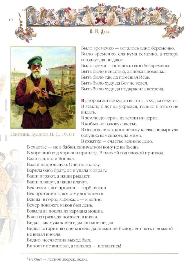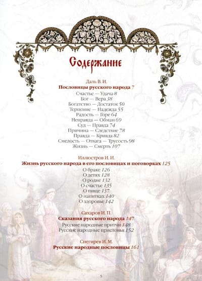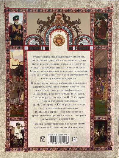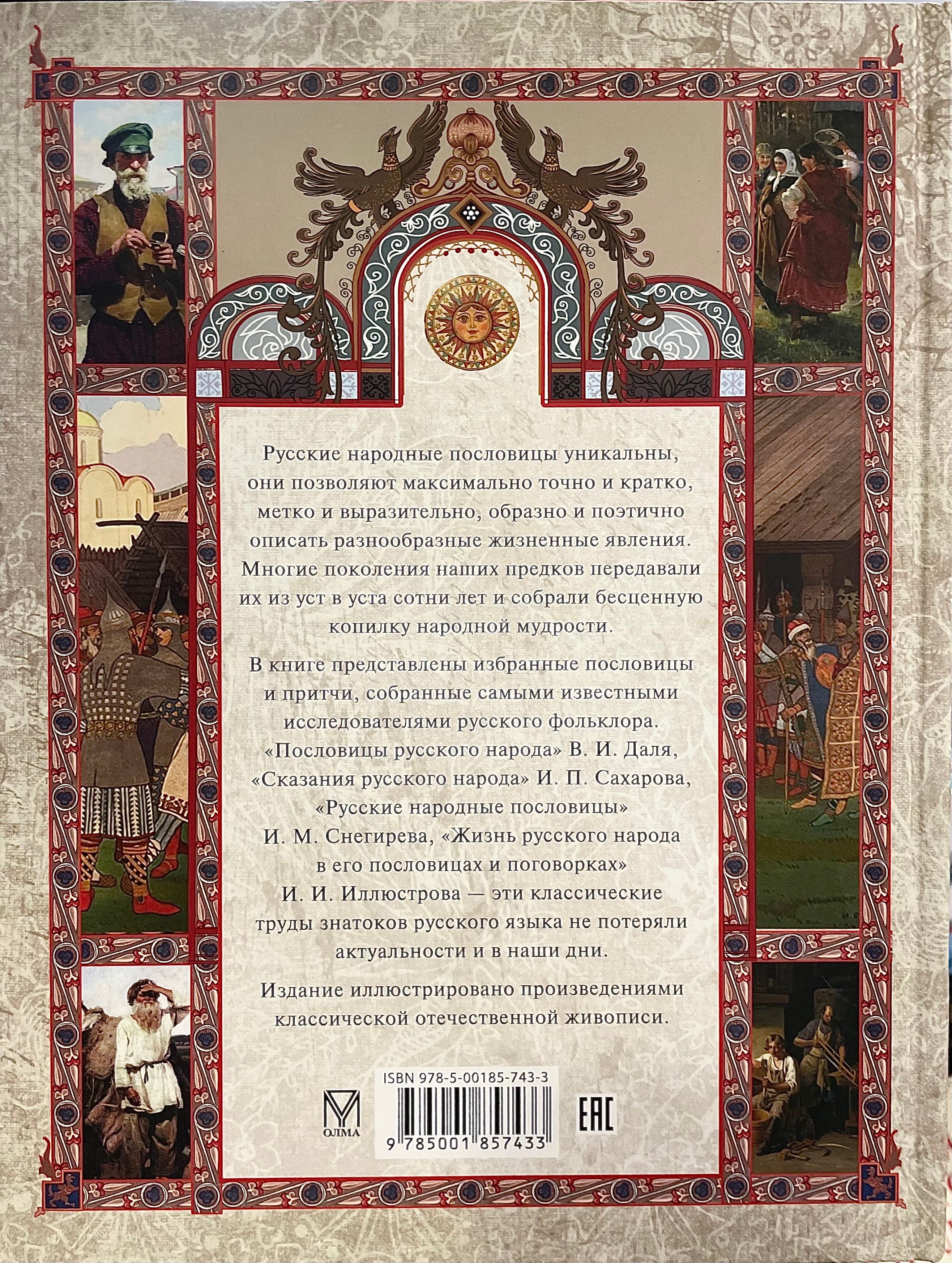 Krievu tautas sakāmvārdi ir unikāli, tie ļauj pēc iespējas precīzāk un īsāk, precīzāk un izteiksmīgāk, tēlaini un poētiski aprakstīt dažādas dzīves parādības. Daudzas mūsu senču paaudzes simtiem gadu mutiski nodeva tās tālāk un savāca nenovērtējamu tautas gudrības dārgumu krātuvi. Grāmatā ir apkopoti atlasīti sakāmvārdi un līdzības, ko apkopojuši slavenākie krievu folkloras pētnieki. V. I. Dāla "Krievu tautas sakāmvārdi", I. P. Saharova "Krievu tautas pasakas", I. M. Sņegireva "Krievu tautas sakāmvārdi", I. I. Iļustrova "Krievu tautas dzīve tās sakāmvārdos un teicienos" - šie krievu valodas ekspertu klasiskie darbi nav zaudējuši savu aktualitāti arī mūsdienās. Publikācija ir ilustrēta ar klasiskās krievu glezniecības darbiem.