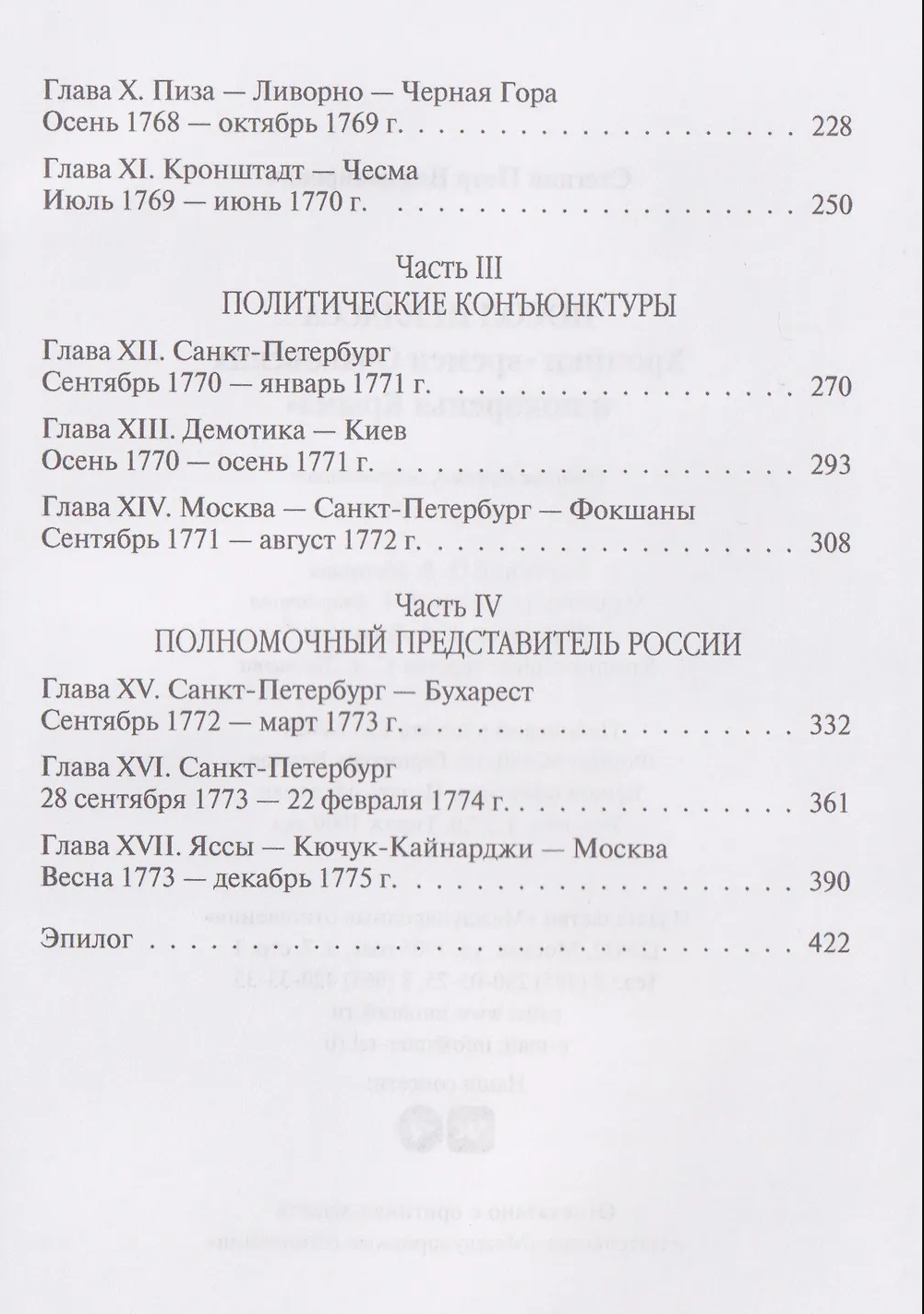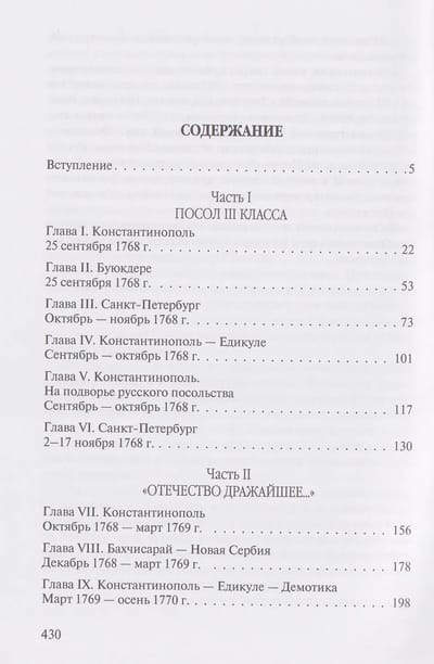 Balstoties uz Krievijas impērijas Ārpolitikas arhīva (AVPRI) materiāliem un citiem grūti atrodamiem avotiem, grāmata mūsdienu lasītājus pārved uz imperatores Katrīnas Lielās laikmetu. Pēc autora teiktā, viņa darbs ir "stāstījums par Krievijas diplomātu Alekseju Mihailoviču Obreskovu (1718–1787), kurā ietverti autentiski stāsti par vēstniecības ierēdņu ieslodzījumu Konstantinopoles Edikulā, viņu grūtībām un klejojumiem, dienējot Turcijas armijas aizmugures rindās, kā arī diplomātiski dokumenti un ikdienas piezīmes par militārajām kaujām, miera kongresiem un neaizmirstamiem Krievijas-Turcijas kara notikumiem". Izdevumam pievienotas daudzas retas 18. un 19. gadsimta ilustrācijas.