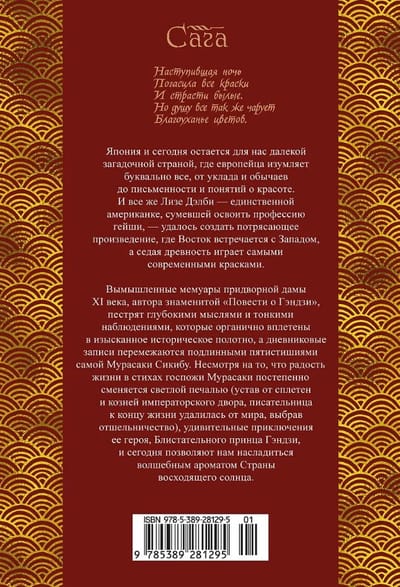 11. gadsimtā galma dāma Murasaki Šikibu sarakstīja pasaulē pirmo naratīvo romānu "Genji Monogatari", kas kļuva par populārāko darbu japāņu literatūras vēsturē. Tūkstoš gadus vēlāk, 21. gadsimta mijā, amerikāniete Liza Dalbija radīja personīgo biogrāfiju šai apbrīnojamajai rakstniecei un dzejniecei. Saskaņā ar romāna sižetu, lēdija Murasaki saņem uzaicinājumu kalpot imperatora galmā, pateicoties savam stāstnieces talantam.