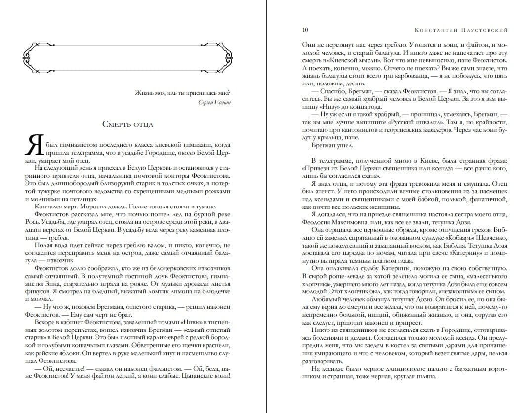Konstantīna Georgijeviča Paustovska (1892–1968) daiļliteratūras autobiogrāfija sastāv no sešām grāmatām: "Tālie gadi" (1946), "Nemierīgā jaunība" (1954), "Nezināmā gadsimta sākums" (1956), "Lielo cerību laiks" (1958), "Skriešanās uz dienvidiem" (1959–1960) un "Klejojumu grāmata" (1963). Lasītājam tiek piedāvāts plašs memuāru klāsts no autora, kurš bija liecinieks 20. gadsimta Krievijas vēstures svarīgākajiem notikumiem un kuram izdevās saglabāt patiesu mīlestību pret rakstīšanu, neskatoties uz visām grūtībām.