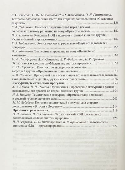 Kopsavilkumā apkopoti materiāli par izziņas-izpētes un eksperimentālajām nodarbībām bērnudārzā. Tie ir izglītojoši un pētnieciski projekti, izglītojošu nodarbību aprises, eksperimentu un eksperimentu apraksti, viktorīnas, uzdevumi, KVN, ekskursijas un tematiskās pastaigas ar pirmsskolas vecuma bērniem no 3 līdz 7 gadiem. Īpaša uzmanība pievērsta vides izglītības jautājumiem.