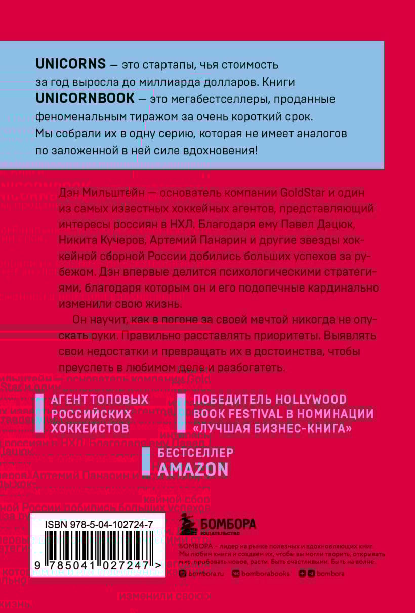 Dens Milšteins ir GoldStar dibinātājs un viens no slavenākajiem hokeja aģentiem, kas pārstāv krievus NHL. Pateicoties viņam, Pāvels Dacjuks, Ņikita Kučerovs, Artemijs Panarins un citas Krievijas hokeja izlases zvaigznes ir guvušas lieliskus panākumus ārzemēs. Dans pirmo reizi dalās ar psiholoģiskajām stratēģijām, ko viņš un viņa padotie izmantoja, lai krasi mainītu savu dzīvi. Viņš mācīs, kā nekad nepadoties, tiecoties pēc saviem sapņiem. Noteikt prioritātes. Identificēt savus trūkumus un pārvērst tos par stiprajām pusēm, lai gūtu panākumus savā iecienītajā biznesā un kļūtu bagāts.