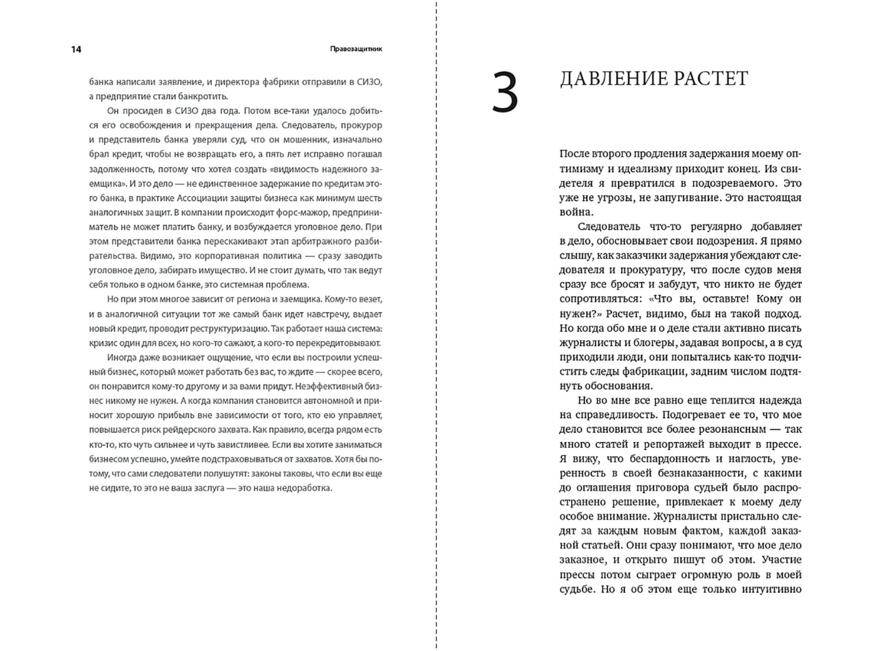 Krievijā uzņēmēji ir ārkārtīgi neaizsargāti: sarežģīta tiesību sistēma un negodīgu konkurentu agresija var novest pie ieslodzījuma un visu aktīvu zaudēšanas. Turklāt attaisnošanas iespējas ir ārkārtīgi niecīgas — tikai 0,2% gadījumu beidzas ar pozitīvu iznākumu.