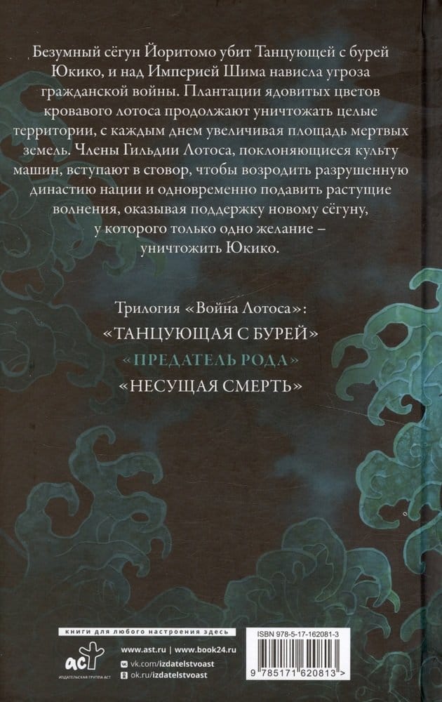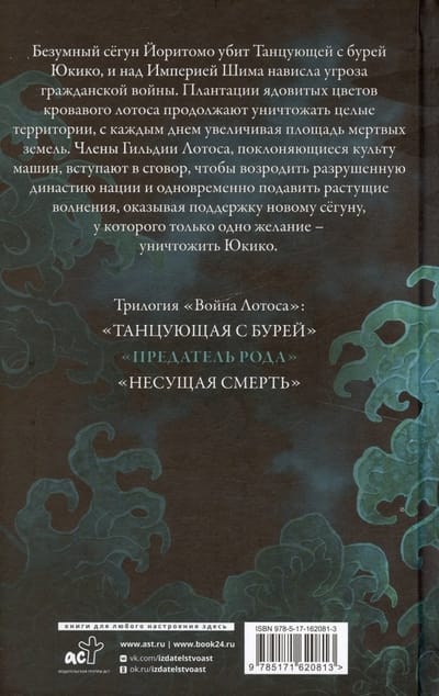 Trakā šogūna Joritomo slepkavību pastrādā Jukiko, dejojot ar vētru, un Šimas impērijai draud pilsoņu karš. Inde indīgo asins lotosa ziedu plantācijas turpina iznīcināt veselas teritorijas, ar katru dienu palielinot mirušās zemes platību. Lotosu ģildes locekļi, kas pielūdz mašīnu kultu, rīko sazvērestību, lai atdzīvinātu sagrauto nācijas dinastiju, vienlaikus apspiežot pieaugošos nemierus un atbalstot jauno šogunu, kuram ir viena vēlme - iznīcināt Jukiko. Sadrumstalota impērija, tumšs mantojums un gaidāma vētra - tas viss Džija Kristofa bestsellera "Dejošana ar vētru" turpinājumā.