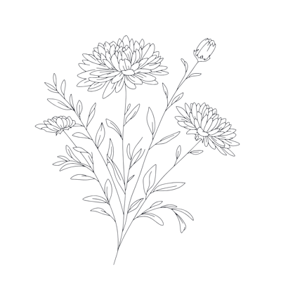 Skaisti ziedi. Delikāta krāsojamā lapa iedvesmai