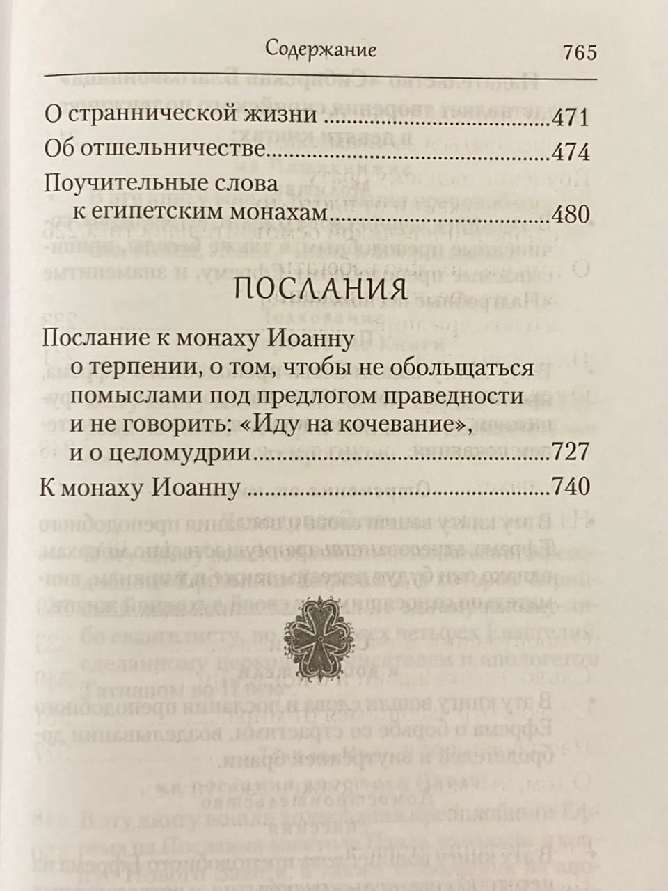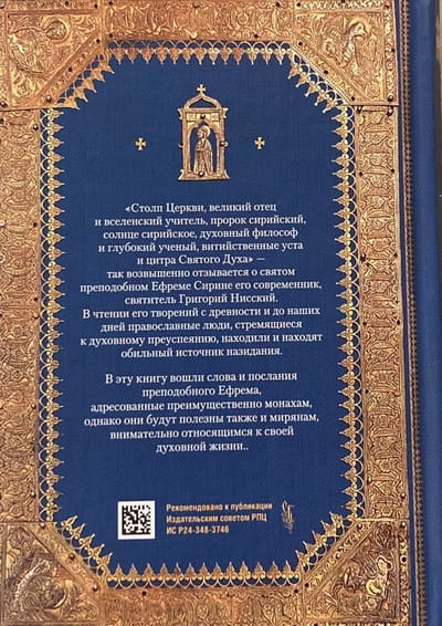 “Baznīcas balsts, dižais tēvs un universāls skolotājs, Sīrijas pravietis, Sīrijas saule, garīgais filozofs un dziļais zinātnieks, vitāli svarīgā mute un Svētā Gara zitra” – tik cildeni runā par Sv. Efraima sīriešu viņa laikabiedru, Sv. Gregory no Nyssa. Lasot viņa darbus no senatnes līdz mūsdienām, pareizticīgie, kas tiecas pēc garīgas labklājības, ir atraduši un atraduši bagātīgu pacilātības avotu. Izdevniecība „Sibīrijas askētisms" turpina publicēt Sīrijas askētikas darbus. Šajā grāmatā iekļauti Svētā Efraima vārdi un epistles, kas adresēti galvenokārt mūkiem, bet tie arī noderēs, lai gulētu cilvēkus, kuri ir uzmanīgi pret savu garīgo dzīvi.