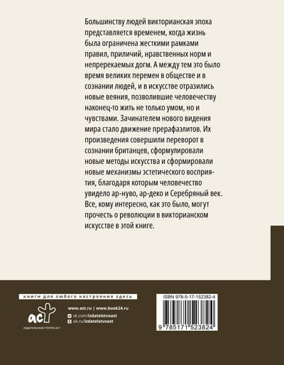 Lielākā daļa cilvēku Viktorijas laikmetu uzskata par laiku, kad dzīvi ierobežoja stingri noteikumi, pieklājība, morāle un neapšaubāmas dogmas. Tajā pašā laikā tas bija lielu pārmaiņu laiks sabiedrībā un cilvēku prātos, un mākslā atspoguļojās jaunas tendences, kas ļāva cilvēcei beidzot dzīvot ne tikai prātu, bet arī jūtām. Jaunā pasaules redzējuma aizsācējs bija prerafaelītu kustība. Viņu darbi revolucionizēja britu apziņu, formulēja jaunas mākslas metodes un veidoja jaunus estētiskās uztveres mehānismus, pateicoties kuriem cilvēce piedzīvoja jūgendstilu, Art Deco un Sudraba laikmetu. Ikviens, kuru interesē, kā tas notika, šajā grāmatā var izlasīt par revolūciju Viktorijas laikmeta mākslā.