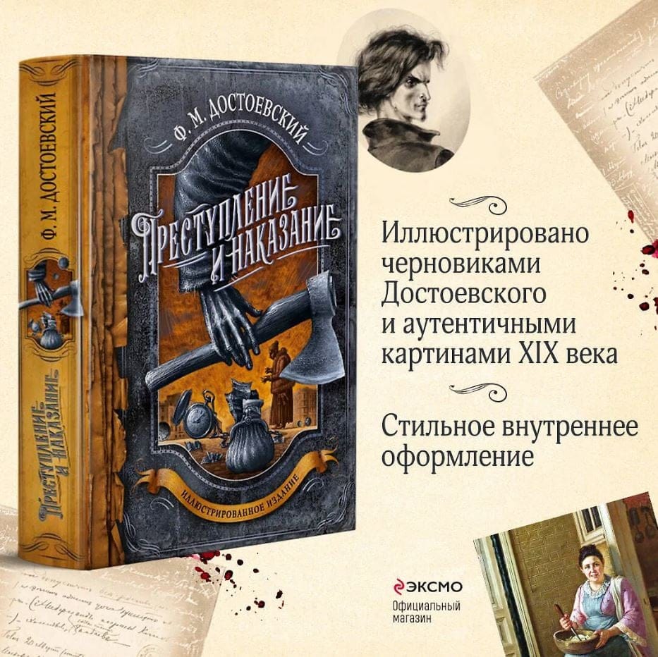 Stilīgs leģendārā romāna dāvanu izdevums ar slavenās mākslinieces Olgas Zakisas vāku, kas ilustrēts ar Dostojevska paša melnrakstu manuskriptiem un autentiskām 19. gadsimta gleznām.