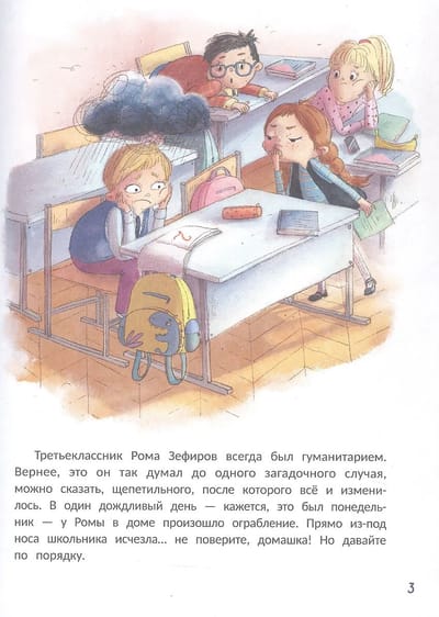 Kādā lietainā dienā savās mājās tika aplaupīts 7.skolas 3.b klases skolnieks Romas Zefirovs. Tieši no skolnieka deguna viņa... neticēsi, pazuda matemātikas mājasdarbs! Viņa draugs Maška, kurš zina, kā noņemt pirkstu nospiedumus un nopratināt aizdomās turamos, palīdzēs viņam atrast nolaupītāju, lai labotu viņa nepelnīti slikto atzīmi.