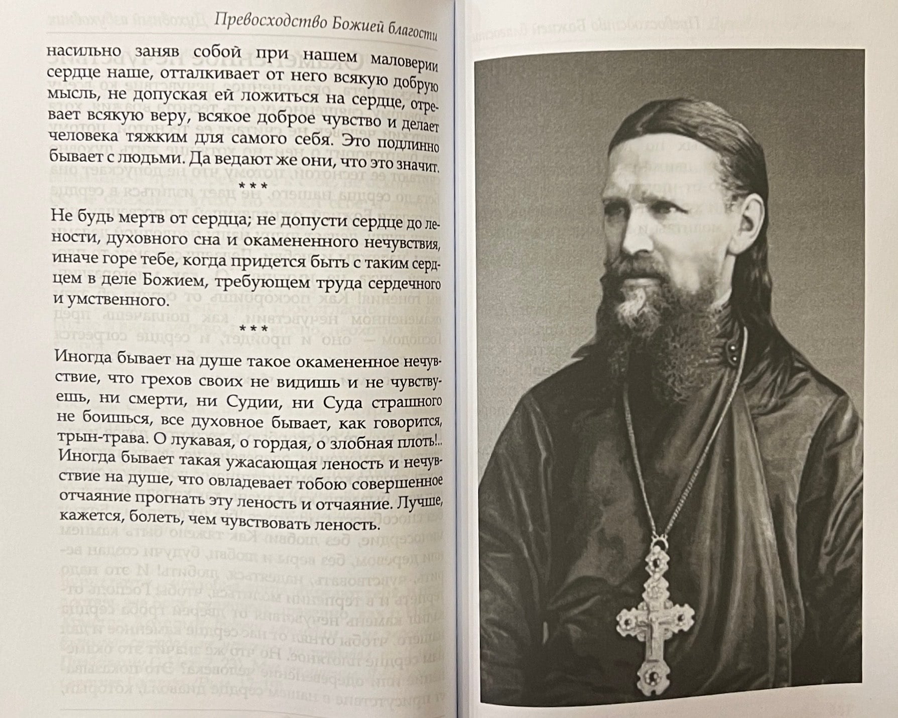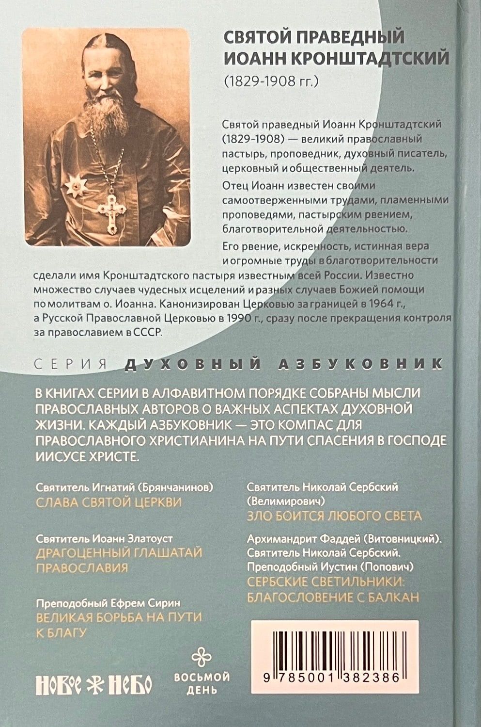 Svētā taisnība Jānis no Kronštates (1829—1908) bija liels pareizticīgo mācītājs, sludinātājs, garīgais rakstnieks, baznīca un sabiedriskais darbinieks. Tēvs Jānis ir pazīstams ar saviem pašaizliedzīgajiem darbiem, ugunīgajiem sprediķiem, pastorālo dedzību, labdarības aktivitātēm. Viņa dedzība, sirsnība, patiesa ticība un milzīgi darbi labdarībā padarīja Kronštates mācītāja vārdu zināmu visā Krievijā. Ir daudz brīnumainu dziedināšanas gadījumu un dažādi gadījumi, kad Dievs palīdz ar Tēva Jāņa lūgšanām. 1964. gadā viņu kanonizēja Ārzemju baznīca, bet 1990. gadā Krievijas Pareizticīgā baznīca, tūlīt pēc tam, kad PSRS bija beigusies kontrole pār pareizticību. Svētā Jāņa domas tiek apkopotas pēc tēmām un sakārtotas alfabētiskā secībā lasītāju ērtībai.