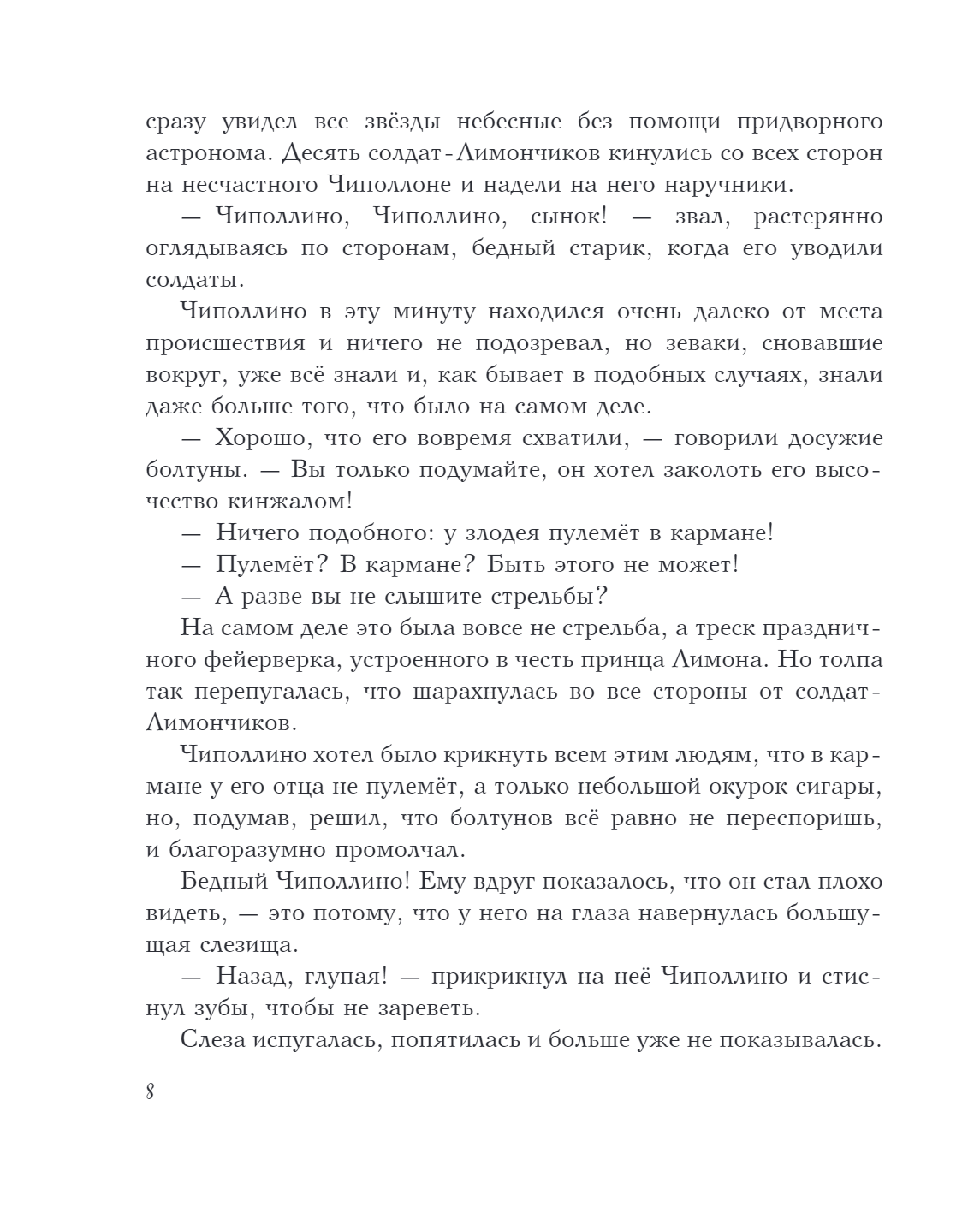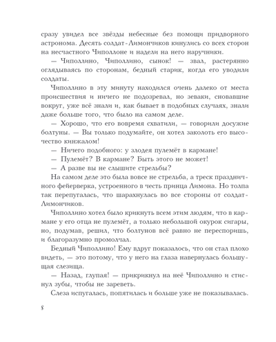 Kad Cipollino tēvs tika ieslodzīts par to, ka uzkāpa uz prinča Lemona kājas, bezbailīgais sīpolu zēns nepalika malā, jo viņš vienmēr ir gatavs palīdzēt saviem draugiem un ģimenei. Lai atbrīvotu savu tēvu, Cipollino būs jāpārvar daudzi šķēršļi, un galu galā viņš palīdzēs ne tikai savam tēvam, bet arī daudziem citiem augļu un dārzeņu valsts iedzīvotājiem un iegūs jaunus draugus. Pasakas autors Džanni Rodari ir itāļu rakstnieks un prestižākās bērnu literatūras balvas — G.-H. Bogdano — ieguvējs. Andersens. Pasakas ilustrācijas sagatavoja slavenais padomju mākslinieks, olimpiskā lāča "tēvs" Viktors Čižikovs. Pasaka pilnīgā klasiskā tulkojumā, ko veikusi itāļu literatūras speciāliste Zlata Potapova.