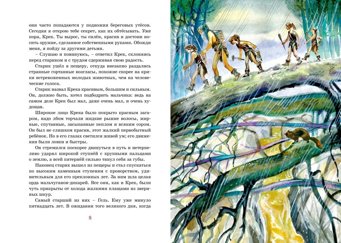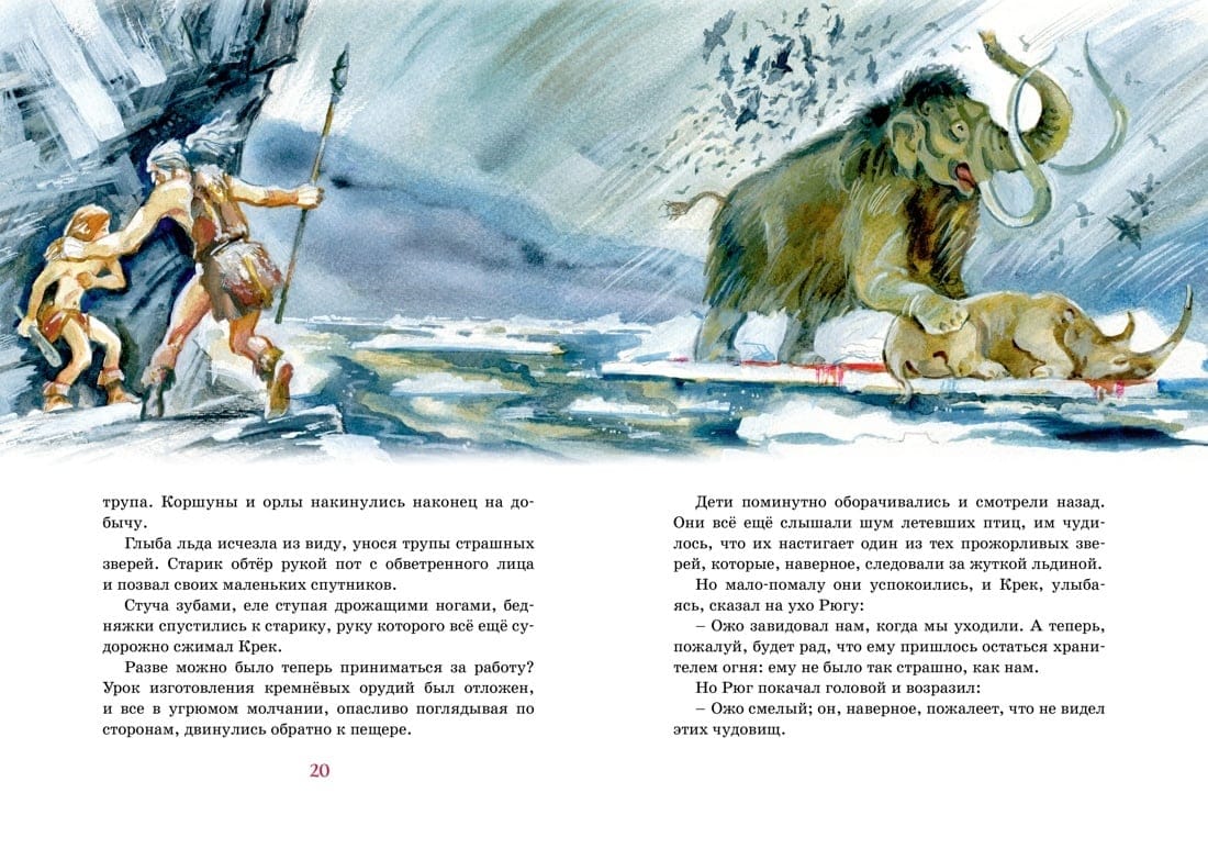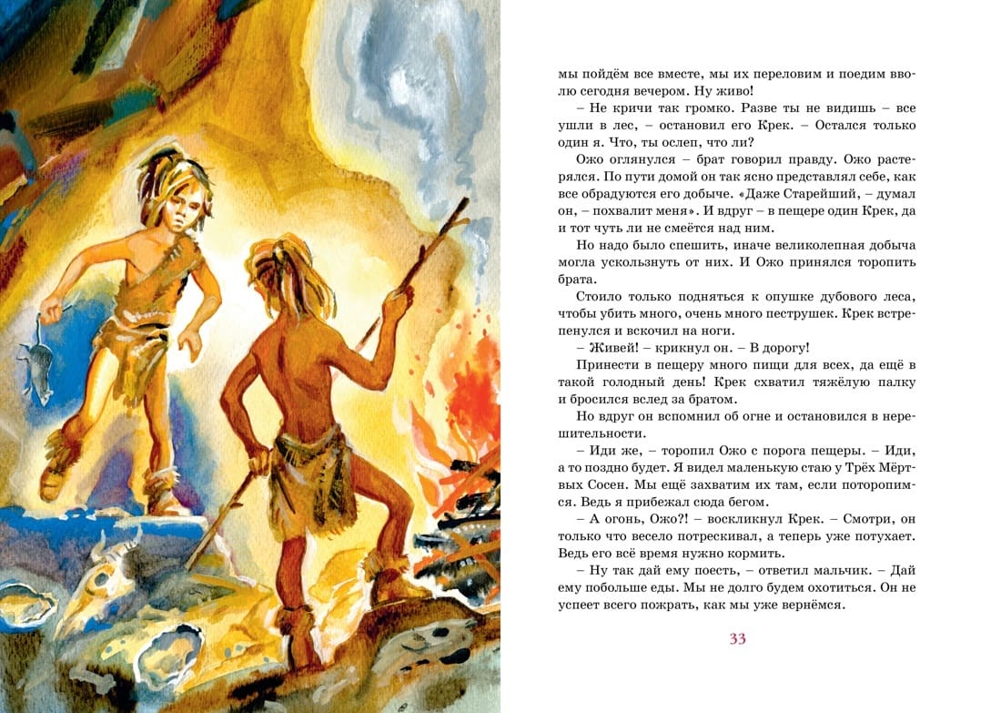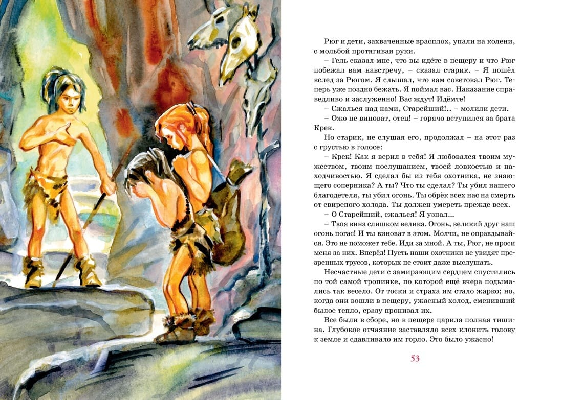 Franču rakstnieka Ernesta d'Erviljas stāsts aizved lasītāju 25 000 gadu atpakaļ. Dzīvā un izklaidējošā veidā autors stāsta par to, cik liela bija katra pirmatnējās kopienas locekļa atbildība pret cilti. Un bērni nebija izņēmums. Aizvēsturiskais zēns Kreks, kurš bija nolaidīgi izturējies pret svēto uguni, tika izraidīts no savas nometnes un tikai pēc ilgiem pārbaudījumiem atrada patvērumu pie ezera cilvēkiem. Cīņā par dzīvību viņš izturēja, stiprināja savu garu un kļuva par cilvēku.