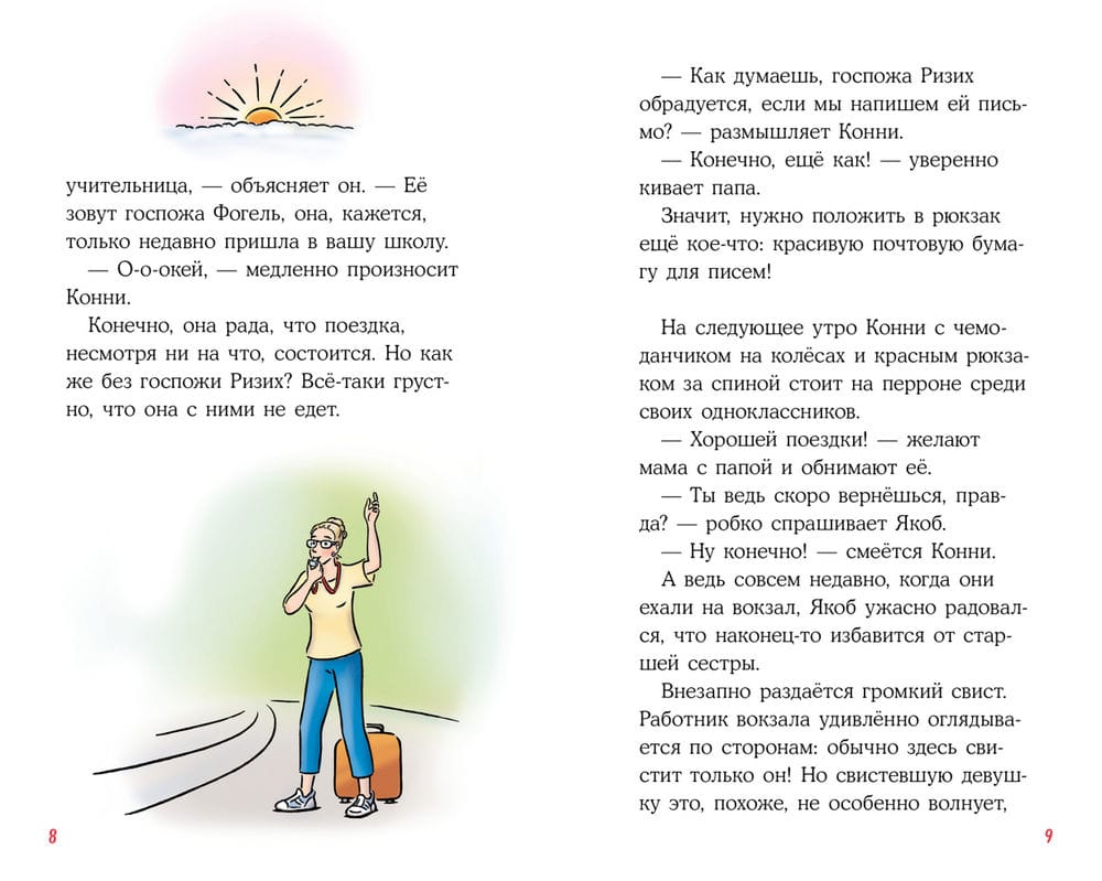 Konijs ar klasi dodas uz ilgi gaidīto nometni. Viņi gaida pārgājienus, nakšņošanu pa ezeru, virvju parku un piedzīvojumus dabā. Bet mīļākā skolotāja vietā viņus pavada pilnīgi svešinieks. Vai puiši spēs atrast kopīgu valodu ar viņu, vai arī jaunais pasūtījums sabojās visu ceļojumu? Īsi un interesanti stāsti no meitenes Konijas dzīves noteikti iepriecinās bērnus. Galu galā, situācijas, kurās grāmatu varoņi krīt, un ko viņi domā un jūtas, ir tik labi pazīstamas meitenēm un zēniem visā pasaulē. Piemērots kopīgai un neatkarīgai lasīšanai no 7 gadiem.