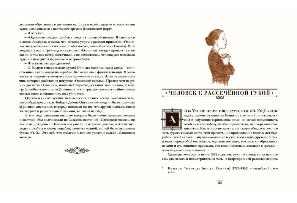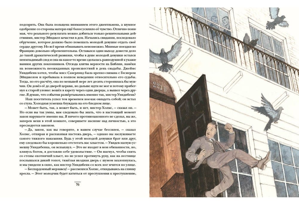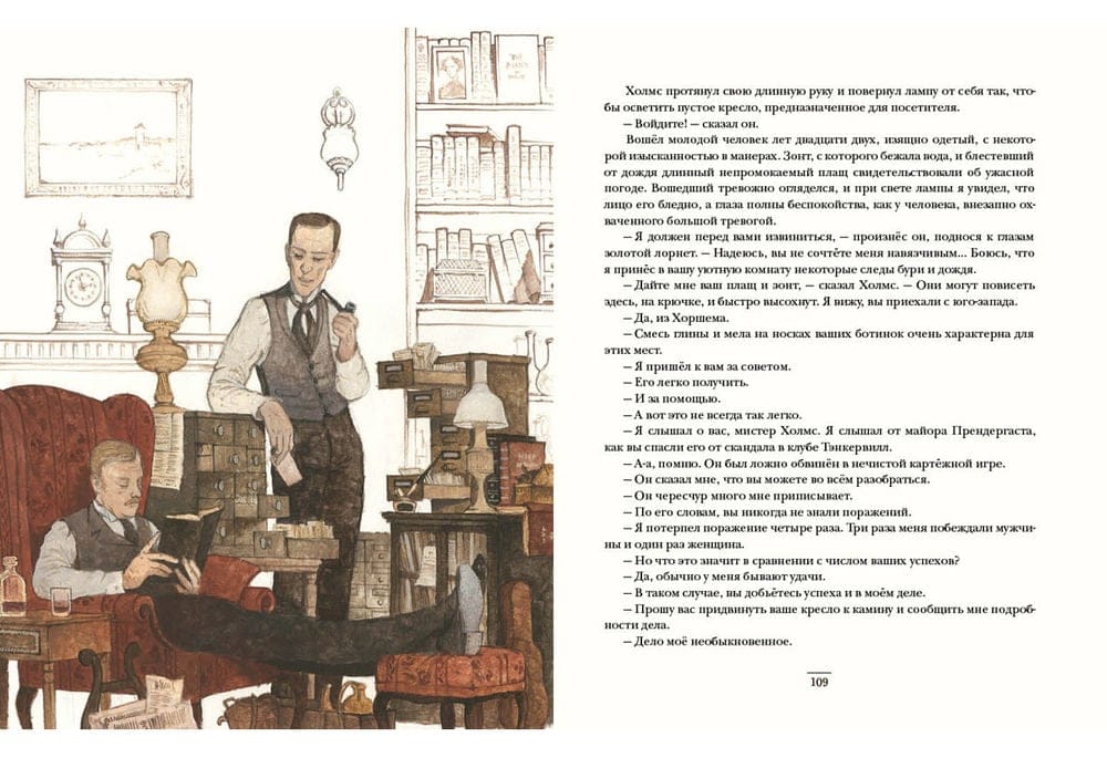 Artūrs Konans Doils ir iegājis pasaules literatūras vēsturē kā atzīts detektīva meistars un nepārspējamā detektīva Šerloka Holmsa "tēvs". Izmeklēšanas, ko Holmss veic kopā ar savu draugu un asistentu doktoru Vatsonu, ir fascinējušas ne vienu vien lasītāju paaudzi ar savām intrigām, sarežģījumiem un negaidītiem atrisinājumiem. Šerloks Holmss ir bezbailīgs cīnītājs pret ļaunumu, novērošanas ģēnijs un asākā prāta īpašnieks, kurš spēj atrisināt vissarežģītāko noslēpumu un panākt taisnīgumu visbezcerīgākajā situācijā. Turklāt viņš ir lielisks aktieris - un nav iespējams paredzēt, kādā neticamā tēlā detektīvs var parādīties mūsu priekšā, sekojot noziedznieka pēdām, lai glābtu cilvēka dzīvību. Skaidrs ir tikai viens - triumfāls lietas noslēgums. Un priekšā - jauna izmeklēšana! Grāmatu ilustrējis mākslinieks Oļegs Pahomovs.