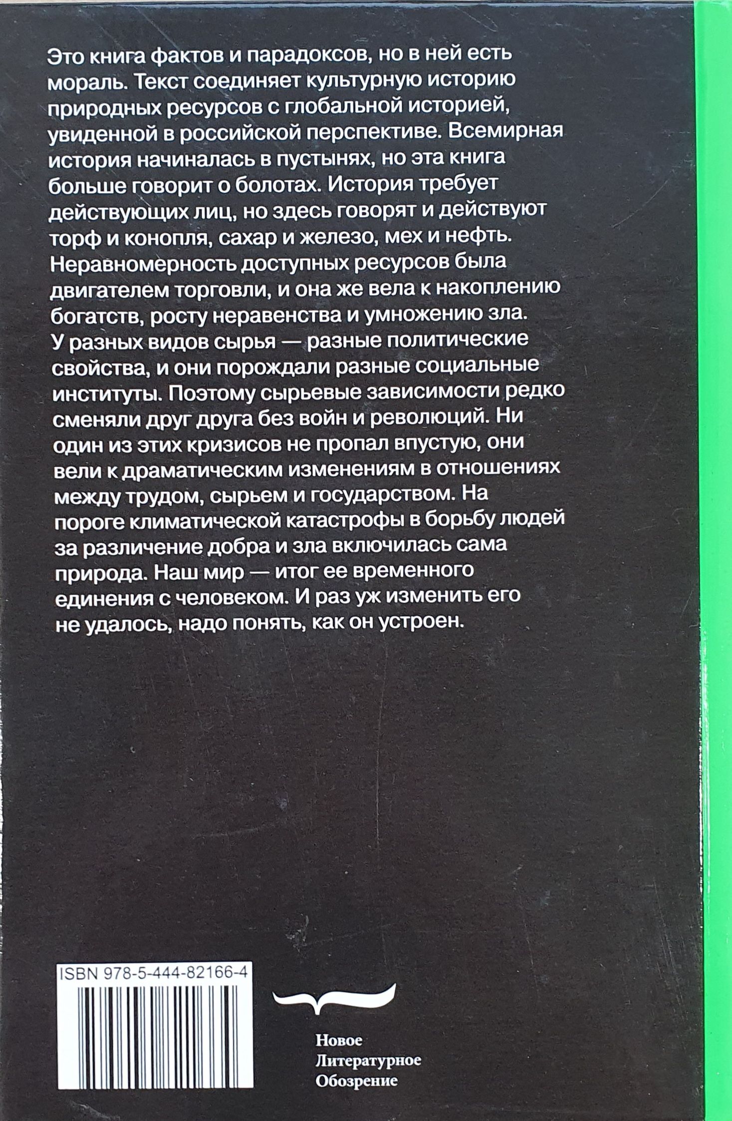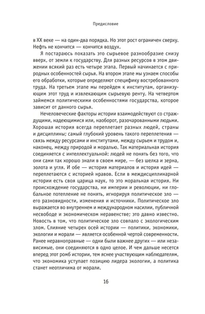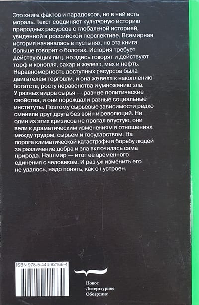 Šī grāmata ir faktu un paradoksu pilna, taču tai ir arī morāle. Tekstā dabas resursu kultūrvēsture ir saistīta ar pasaules vēsturi, kas skatīta no Krievijas perspektīvas. Pasaules vēsture sākās tuksnešos, bet šī grāmata vairāk stāsta par purviem. Vēsturei ir vajadzīgi aktieri, bet šeit runā un darbojas kūdra un kaņepes, cukurs un dzelzs, kažokādas un nafta. Pieejamo resursu nevienmērība ir bijusi tirdzniecības dzinējspēks, un tā ir arī veicinājusi bagātību uzkrāšanos, nevienlīdzības pieaugumu un ļaunuma vairošanos. Dažādām izejvielām bija atšķirīgas politiskās īpašības, un tās radīja dažādas sociālās institūcijas. Tāpēc izejvielu atkarības reti kad nomainīja viena otru bez kariem un revolūcijām. Neviena no šīm krīzēm nebija veltīga; tās izraisīja dramatiskas pārmaiņas attiecībās starp darbu, izejvielām un valsti. Uz klimatiskās katastrofas sliekšņa pati daba iesaistījās cilvēku cīņā par labā un ļaunā nošķiršanu. Mūsu pasaule ir tās pagaidu savienības ar cilvēku rezultāts. Un, tā kā mēs neesam spējuši to mainīt, mums ir jāsaprot, kā tā darbojas.