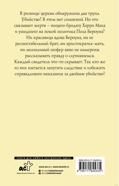 Baznīcas vestibilā tika atrasti divi līķi. Slepkavība? Par to nav šaubu. Bet kas saista upurus - ubaga klaidoņa Harija Maka un pensionēta politiķa Pola Berouna?