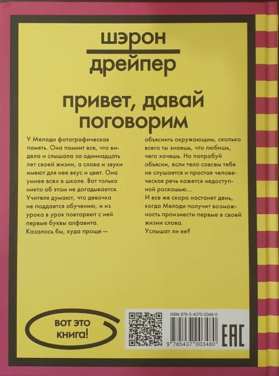 Melodijai ir fotografiska atmiņa. Viņa atceras visu, ko redzējusi un dzirdējusi vienpadsmit gadu laikā, un vārdiem un skaņām viņai piemīt garša un krāsa. Viņa ir gudrāka par visiem skolā. Bet neviens to nezina. Skolotāji domā, ka viņu nevar apmācīt, un viņi atkārto alfabēta pirmos burtus ar viņu stundā pēc stundas. Šķiet, ka daudz vienkāršāk būtu citiem izskaidrot, cik daudz tu zini, ko tu mīli, ko tu vēlies. Bet pamēģini paskaidrot, kad tavs ķermenis tev vispār nepaklausa, un vienkārša cilvēka runa šķiet nesasniedzama greznība... Un tomēr drīz pienāks diena, kad Melodija varēs pateikt savus pirmos vārdus. Vai viņi viņu dzirdēs?