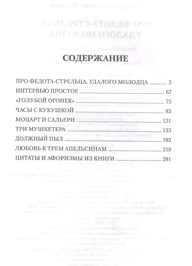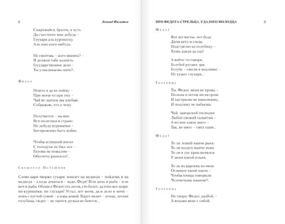 Īpatnējie tēli un asprātīgās ainas neatstās vienaldzīgu nevienu. Pasaku "Par strēlnieku Fedotu" var pamatoti saukt par vienu no spilgtākajām 20. gadsimta grāmatām. Šajā izdevumā iekļautas arī citas Leonīda Filatova lugas un pasakas.