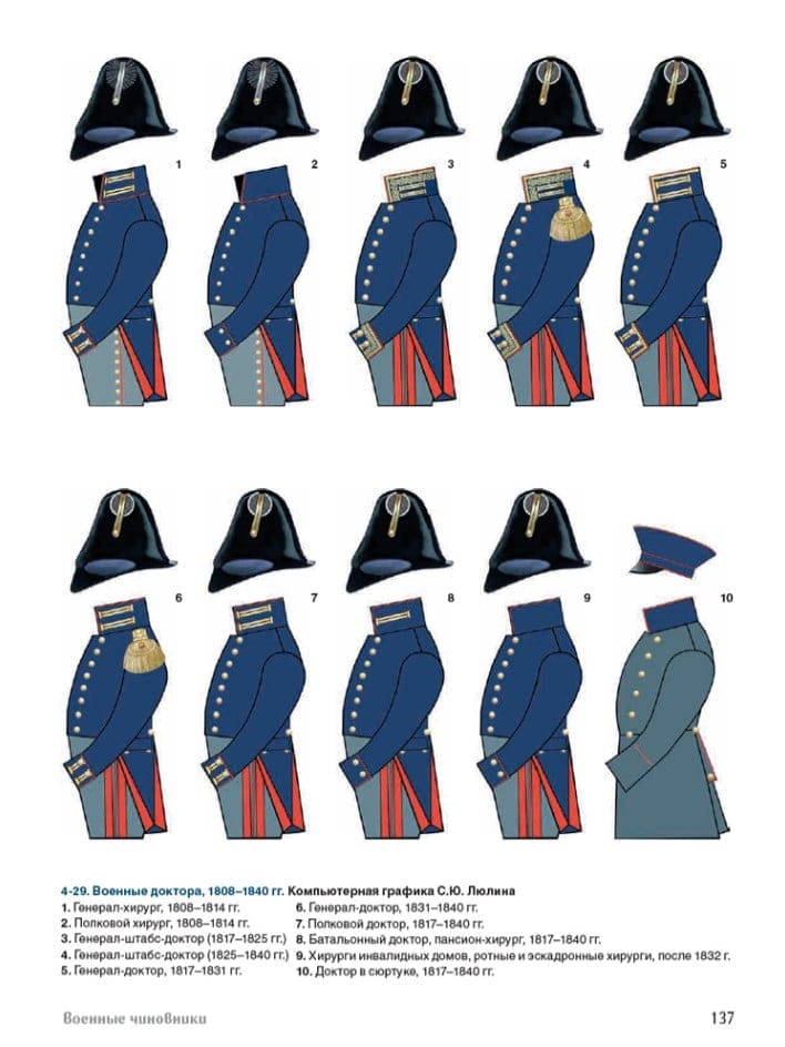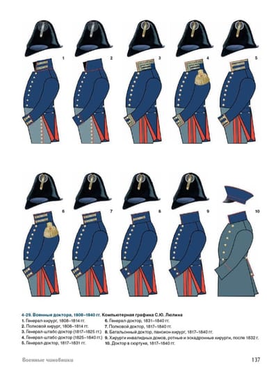 Šī grāmata noslēdz Prūsijas armijai veltīto publikāciju sēriju no 1808. līdz 1840. gadam, aptverot vienību vēsturi, uniformas, ekipējumu un ieročus. Šajā sadaļā ir aplūkots ģenerālštābs, Ģenerālštāba pakāpes, Kara ministrija, adjutanti, kurjeri, militārās amatpersonas, kājnieku artilērija, inženiertehniskās un apgādes vienības, flote, kadetu korpuss, Gvardes instruktoru rota un Birģeru gvarde. Grāmata ir bagātīgi ilustrēta ar vairākiem simtiem oriģinālu gravīru, litogrāfiju, grafikas darbu un gleznu, kas attēlo Prūsijas armijas pakāpes, no muzeju un privātkolekcijām gan Krievijā, gan ārzemēs. Šis izdevums kalpos kā svarīgs uzziņu avots ikvienam, kas pēta 19. gadsimta pirmās puses militāro vēsturi un uniformas.