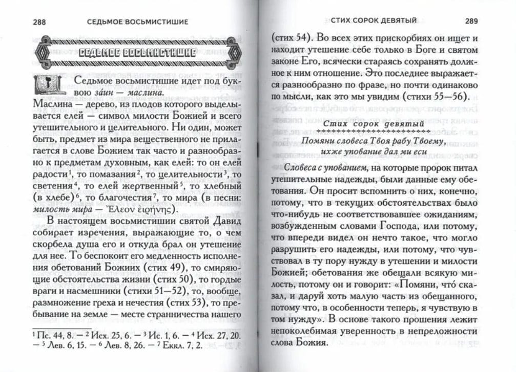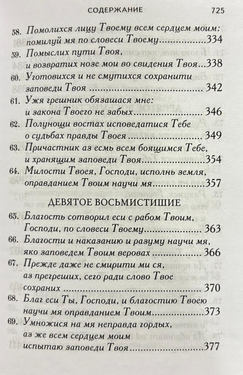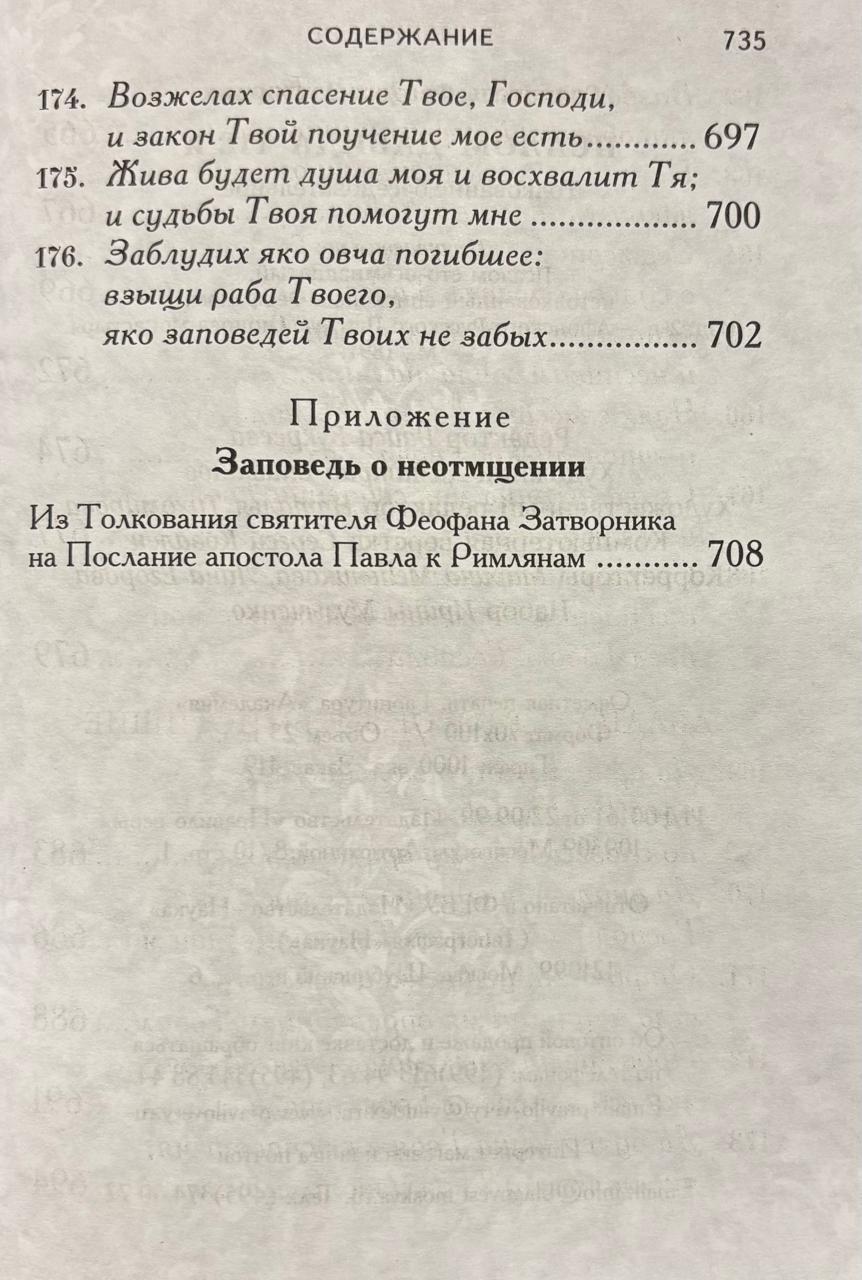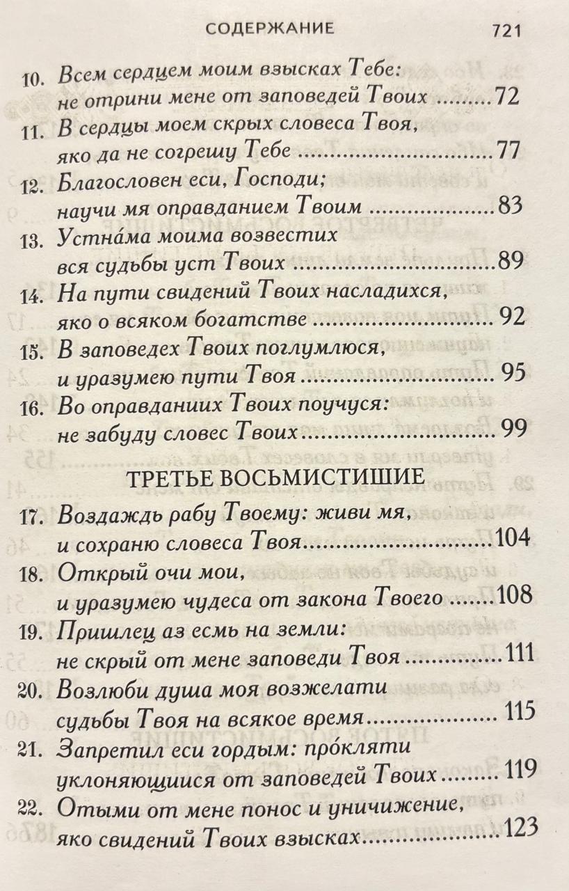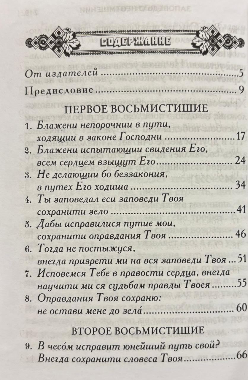 118. psalms ir īpašs darbs, kas paredzēts lasīšanai katrā ikdienas pusnakts dievkalpojumā. Saskaņā ar svētīgā Teodora teikto, "šis psalms ir pietiekams, lai pilnveidotu tos, kas tiecas pēc pilnīgas tikumības, lai pamodinātu uzcītībai tos, kas dzīvo izkliedēti, lai iedvesmotu garā grimstošos, lai labotu nolaidīgos – īsi sakot, lai sniegtu visādus līdzekļus dažādām cilvēciskām vājībām." Svētā Teofāna Vientuļnieka komentārs par Dāvida 118. psalmu ir dziļi pamācošs. Tāpat kā senie svētie tēvi un Baznīcas skolotāji, bīskaps Teofāns pastāvīgi sniedz lasītājiem morālas mācības, mudinot viņus pārdomāt un izvērtēt dažādos kristieša iekšējās garīgās dzīves stāvokļus. Šis ir dzīvs sprediķis par ceļu uz morālo pilnību.