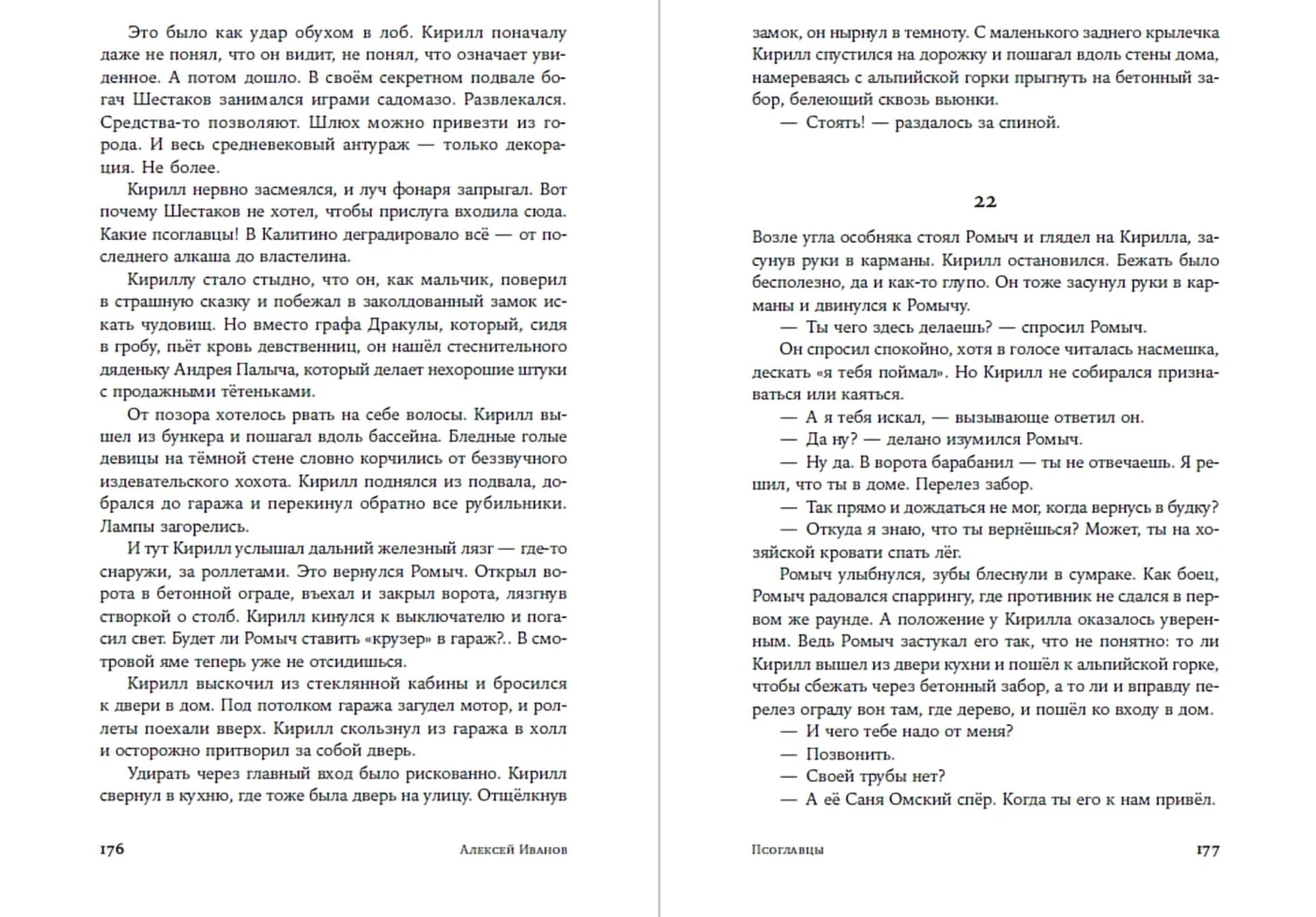 Trīs jauni maskavieši ierodas nomaļā Volgas apgabala ciematā, lai veiktu slepenu darbu: viņiem no pamestas baznīcas sienas jānoņem mirstoša freska. Uz freskas - ķecerīgs Svētā Kristofora tēls ar suņa galvu. Izrādās, ka ciematā senos laikos atradies šķeltniecisks eremītis, un hakeru darbs ir noslēpumainu dengerologu, pasaules kultūras "sapieru", pieredze. Un kūdras ugunsgrēku drūmumā zudusī vēsturiskā atmiņa dzemdē briesmīgo Psoglavecu - vai nu šizmatiķu dēmonu, vai nometnes sargātāju dievu. Ja vēlaties, tas ir žanra romāns, vilkaču šausmu stāsts. Ja jums patīk, tā ir jaunā lauku proza. Ja jums patīk - tīmekļa sērfinga stilizācija par krievu šķelšanos. Bet kopumā Psoglavci ir stāsts par neredzamām kultūras robežām un šo robežu sargiem. Jebkurai sabiedrībai ir noteikts uzskatu loks, un sabiedrība neļauj cilvēkam izkāpt no šī loka, un, ja cilvēks uzdrīkstas iziet ārpus svētās robežas, tad briesmoņi metas viņam pakaļ.