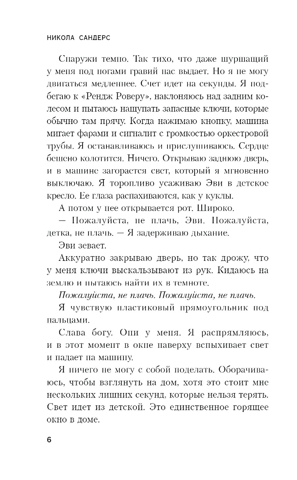 Es cenšos visu iespējamo, lai mūs no šejienes dabūtu prom. Ja mazulis raudās, mēs mirsim... Es uzmanīgi izeju no mājas un apgriežos. Viņa parādās logā un sāk dauzīt stiklu ar abām plaukstām, kamēr aiz viņas ceļas tumši dūmi.
