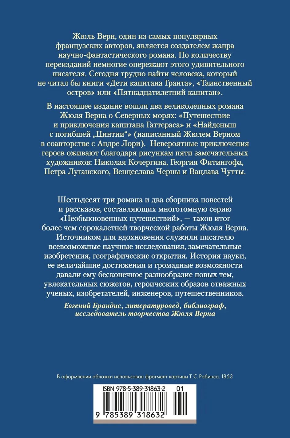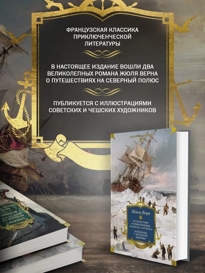 Šajā izdevumā iekļauti divi Žila Verna lieliskie romāni par ceļojumiem uz Ziemeļpolu: "Kapteiņa Haterasa ceļojums un piedzīvojumi" un "Atradene no pazudušās Sindijas" (Žils Verns kopā ar Andrē Loriju). Šie neticamie piedzīvojumi skarbajā Ziemeļu jūru jūrā tiek atdzīvināti, pateicoties piecu ievērojamu mākslinieku - Nikolaja Kočergina, Georgija Fjetinghofa, Petra Luhanska, Ventseslava Černija un Vāclava Čutas - ilustrācijām.