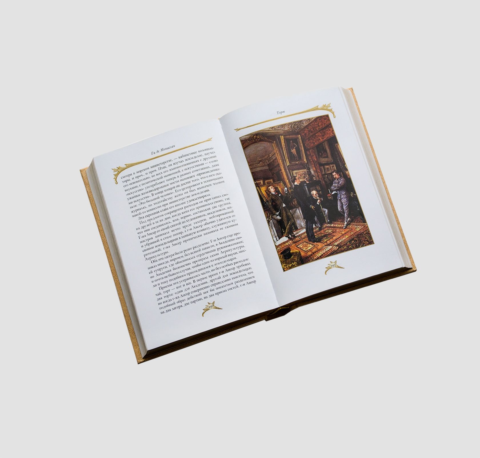 Tiklīdz atvērsiet šo lieliskā pasaules literatūras klasiķa krāšņo izdevumu, tiklīdz atvērsiet šo krāšņo izdevumu, jūs, dārgais lasītāj, ieraudzīsiet fascinējošo Maupasāna prozu slavenu mākslinieku ilustrācijās kā reālu dzīves ainu. Aptuveni 150 ilustrācijas katrā šī pilnā lielā cilvēku dvēseļu pazinēja darbu krājuma sējumā liks jums justies kā grāmatā aprakstīto notikumu dalībniekam.