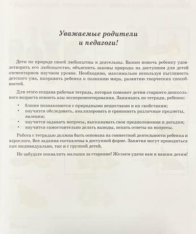 Darba burtnīca par eksperimentālajām aktivitātēm Nr. 1. Vecākais pirmsskolas vecums