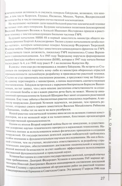 Sērijā ietilpst četri sējumi: „No lidmašīnām līdz "Rockets", „Podlipki – Kapustin Yar – Tyuratam", „Karstās aukstā kara dienas", „Mūņu skrējiens". Šīs grāmatas sauc par iekšzemes raķešu un kosmosa tehnoloģiju vēsturi un slavenāko publikāciju par kosmosu.