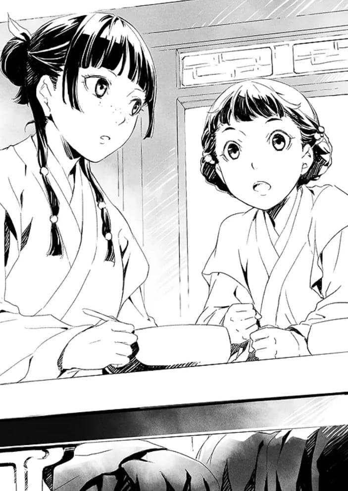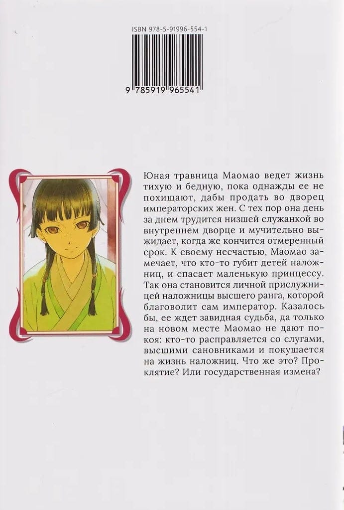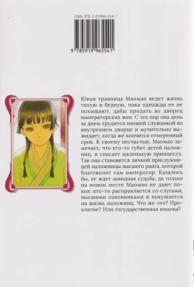 Jaunā zāļu pazinēja Maomao dzīvo klusu un nabadzīgu dzīvi, līdz kādu dienu viņu nolaupa un pārdod imperatora sievām pilī. Kopš tā laika viņa dienu no dienas strādā kā vienkārša kalpone iekšējā pilī, mokoši gaidot, kad beigsies viņas atvēlētais laiks. Diemžēl Maomao pamana, ka kāds nogalina konkubīņu bērnus, un izglābj mazo princesi. Tā viņa kļūst par augsta ranga konkubīnes, kuru iecienījis pats imperators, personīgo kalponi. Šķiet, ka viņu sagaida apskaužams liktenis, taču jaunajā amatā Maomao vajā: kāds nogalina kalpus, augsta ranga amatpersonas un mēģina nogalināt konkubīnes. Kas tas ir? Lāsts? Vai nodevība?
