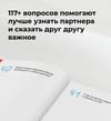- Vairāk nekā 117 jautājumi, kas izstrādāti, balstoties uz mūsdienu pētījumiem attiecību psiholoģijā;