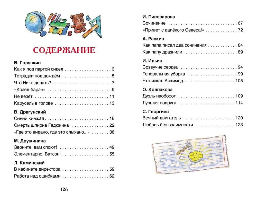 Skola nav tikai mācību grāmatas, burtnīcas, pārbaudes lapas, divnieki un piecnieki, bet arī uzticami draugi, pirmās uzvaras, mazas bēdas un, protams, smieklīgas situācijas, kas paliks atmiņā daudzus gadus. Šajā grāmatā apkopoti smieklīgākie stāsti par skolu, kurus sarakstījuši tādi brīnišķīgi rakstnieki kā V. Dragunskis, V. Goļjavkins, I. Pivovarova, A. Raskins un citi. Šie labie stāsti par parastiem zēniem un meitenēm, par mācībām un draudzību neatstās vienaldzīgu nevienu.