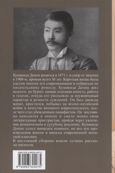 Kunikida Doppo piedzima 1871. gadā un nomira no gripas 1908. gadā, nodzīvojot tikai 36 gadus. Īss mūžs bija daudzu viņa laikabiedru un rakstnieku biedru liktenis. Kunikida Doppo nedzīvoja ilgi, taču viņš nodzīvoja vētrainu dzīvi: nabadzīgs, izsalcis jauneklis, darbs laikrakstos, no kurienes tika atlaists par savu ķildīgo dabu un skarbajiem spriedumiem. Viņš bija divreiz precējies, tika kristīts, piedalījās Ķīnas-Japānas karā kā kara korespondents, pēc tam kļuva par pārliecinātu pacifistu. Viņš pastāvīgi meklēja un drosmīgi mainīja savas literārās preferences, pārejot no romantisma aizraušanās uz tīru reālismu. Kunikidam Doppo izdevās uzrakstīt maz, taču visi viņa darbi ir iekļauti mūsdienu japāņu klasikas annālēs, un daudzi no tiem tiek studēti skolā.