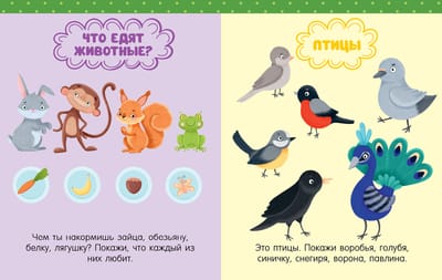 Pildot vienkāršus uzdevumus un attīstot runu, uzmanību un atmiņu, jūsu mazulis iemācīsies, kuri dzīvnieki ir mājdzīvnieki un kuri savvaļas dzīvnieki, un palīdzēs viņiem izvēlēties pareizo barību. Viņš arī iepazīsies ar ziediem un kokiem, dārzeņiem un augļiem, ēdieniem un drēbēm... Jūsu mazulis viegli apgūs dažādas tēmas, kas ir svarīgas runas attīstībai, un palielinās savu vārdu krājumu.