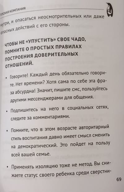 Grāmatā Larisa Surkova izvirza vecākiem sarežģītus jautājumus: kā atrast kopīgu valodu ar pusaudzi, kuram ir grūtības saskarsmē, emociju pārvaldīšanā, neparedzētu grūtību pārvarēšanā un kā pasargāt viņu no sliktas ietekmes, kā arī daudz ko citu.
