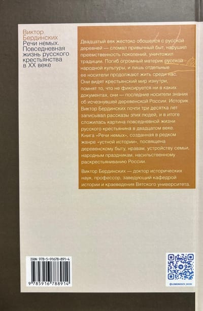 Savā mutvārdu vēstures grāmatā "Mēmā runa" slavenais krievu vēsturnieks Viktors Berdinskis pierāda, ka plašais krievu tautas kultūras kontinents, kas gāja bojā, bija ievērojama vērtība. Grāmata ir balstīta uz simtiem zemnieku stāstiem, kas apkopoti pēdējo 25 gadu laikā. Stāstnieki raugās uz zemnieku pasauli no iekšpuses, tverot nedokumentētas atziņas. Grāmatas sadaļas ir veltītas dzīvei krievu ciematā, tautas svētkiem, ģimenes dzīvei un Krievijas dezemnieciskācijai 20. gadsimtā.