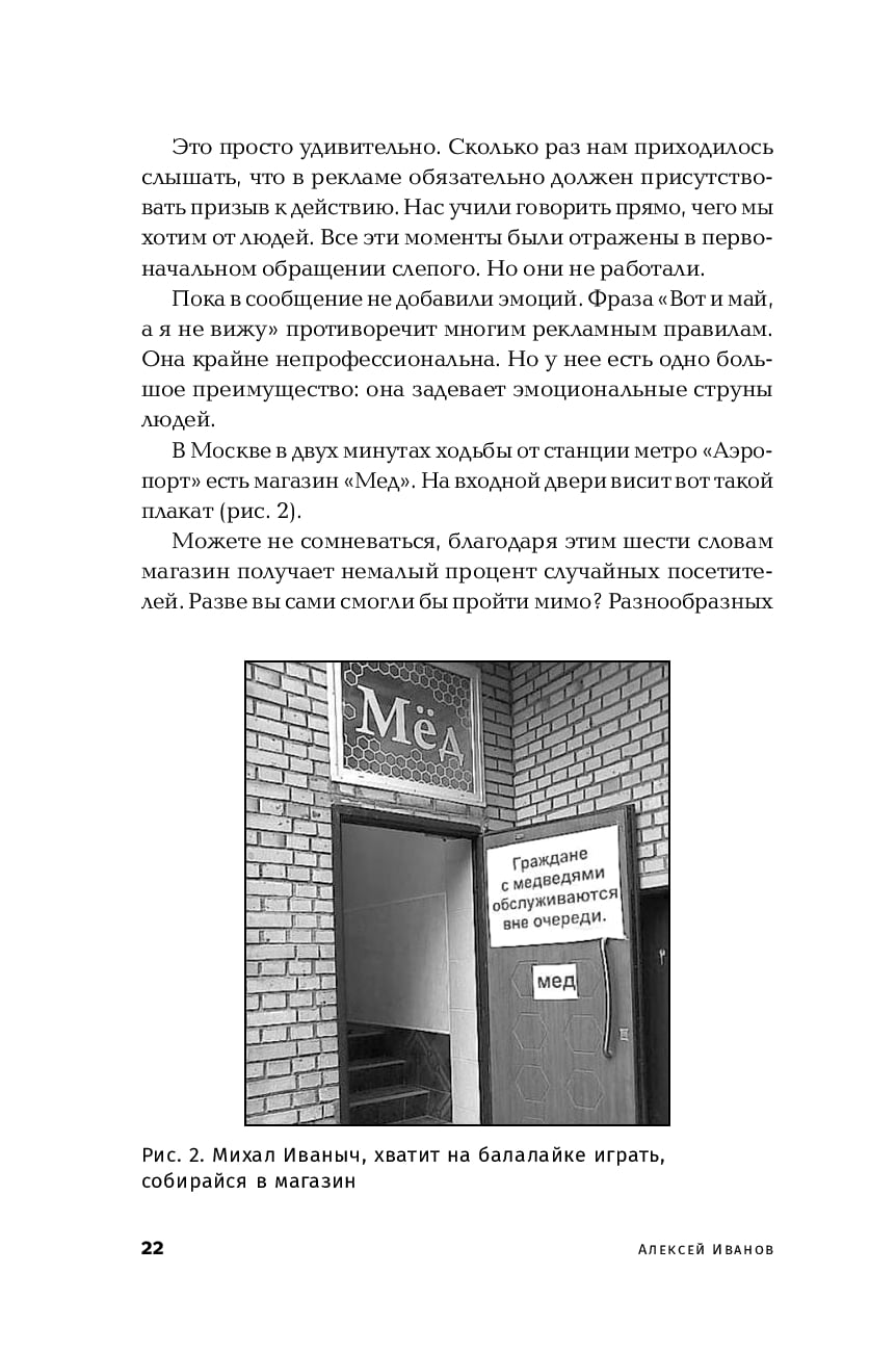 Uzņēmumi bieži ir neapmierināti ar reklāmas rezultātiem. Vairumā gadījumu problēma nav reklāmas piegādes kanāli, bet gan reklāmas saturs un cilvēku emocijas, ko tā izraisa. Aplūkojiet savus reklāmas bukletus. Pārbaudiet reklāmas presē. Pārlasiet rakstus savā tīmekļa vietnē. Uz kādām emocionālajām klientu pogām jūs spiežat? Ja tādu nav, ja jūsu reklāmas ir emocionāli "iesaldētas", tad šī grāmata jums būs ļoti noderīga.