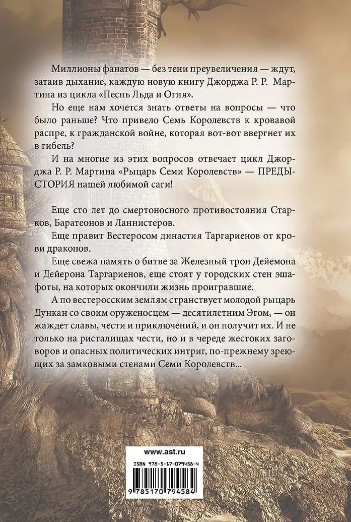 Simts gadus pirms Roberta Barateona sacelšanās un Vētras dzimušās Daenerys dzimšanas. Asiņainā Pūķu Deja ir izdzisusi, un pēdējās spārnotās ķirzakas ir izzudušas, bet Dzelzs troni joprojām ieņem Targarjenu dinastija, un vārdi "gods" un "varoņa" vēl nav zaudējuši savu agrāko spēku. Un naivs un cēls bruņinieks Dankans Garais, sava uzticamā bruņinieka Olas pavadībā, klīst pa Vesterosas ceļiem. Šo pāri sagaida liels liktenis, spēcīgi ienaidnieki un bīstami varoņdarbi, bet pagaidām abi vēl ir jauni un sapņo tikai par slavu un piedzīvojumiem. Un Danka pirmais mērķis ir uzvara turnīrā Ašfordā, kuru pats karalis pagodinās ar savu klātbūtni. Un tā kā zaudētājiem ir jāatdod savas bruņas un zirgi uzvarētājam, Dankam nebūs otrās iespējas gūt panākumus. Šajā izdevumā ir iekļauti visi trīs stāsti par Danku un Olu: "Dzīvžoga bruņinieks", "Zvērinātais bruņinieks" un "Noslēpumainais bruņinieks".