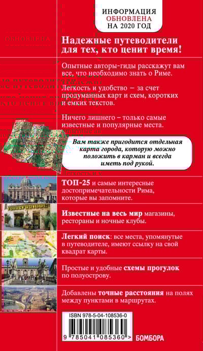 Šis ir atjaunināts ekspress ceļvedis uz Romu. Tajā ir īsa informācija par galvaspilsētu, padomi, kā pavadīt pirmo un otro dienu, un 25 populārākie apskates objekti. Jūs atradīsiet arī aprakstus par interesantākajām vietām visos pilsētas rajonos. Pastaigājieties, pētiet, apbrīnojiet mūžīgo pilsētu un iegūstiet nepieciešamo informāciju bez apstājas! Izdevumam ir pievienota detalizēta pilsētas karte.