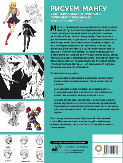 Manga ir japāņu tēlotājmākslas veids, kas būtībā ir japāņu stilā zīmētas komiksu grāmatas, kuras ir plaši izplatītas ne tikai Āzijā, bet arī visā pasaulē. Vārds "manga" burtiski nozīmē "groteskas", "dīvainas" (vai "smieklīgas") bildes. Manga zīmēšana nav viegls darbs, taču ar šīs grāmatas palīdzību jūs ne tikai viegli iemācīsieties zīmēt manga un kļūsiet par īstu mangaku, bet arī gūsiet īstu prieku no šī darba! Šajā grāmatā atradīsi visu, kas tev jāzina, lai veiksmīgi zīmētu manga tēlus. Izmantojot vienkāršu pakāpenisku sistēmu, mēs jūs aizvedīsim no sākuma - pamata figūras izveides - līdz dinamiskam zīmējumam, ar kuru varēsiet lepoties. No šīs grāmatas jūs uzzināsiet: - kā zīmēt tēlus dažādos klasiskajos manga stilos, tostarp kodomo, shōnen, shōjo, jōsei un seinen, - kā radīt veselus scenārijus saviem darbiem, sākot no burbuļojošām fejām un burbuļojošām meitenēm līdz skarbiem dēmoniem, mūku kareivjiem un mechām. - kā plānot, zīmēt un pilnībā animēt savus varoņus, pēc tam izmantojiet prakses lapas, lai kopētu šeit redzamos zīmējumus vai radītu savas unikālas tēlu versijas.