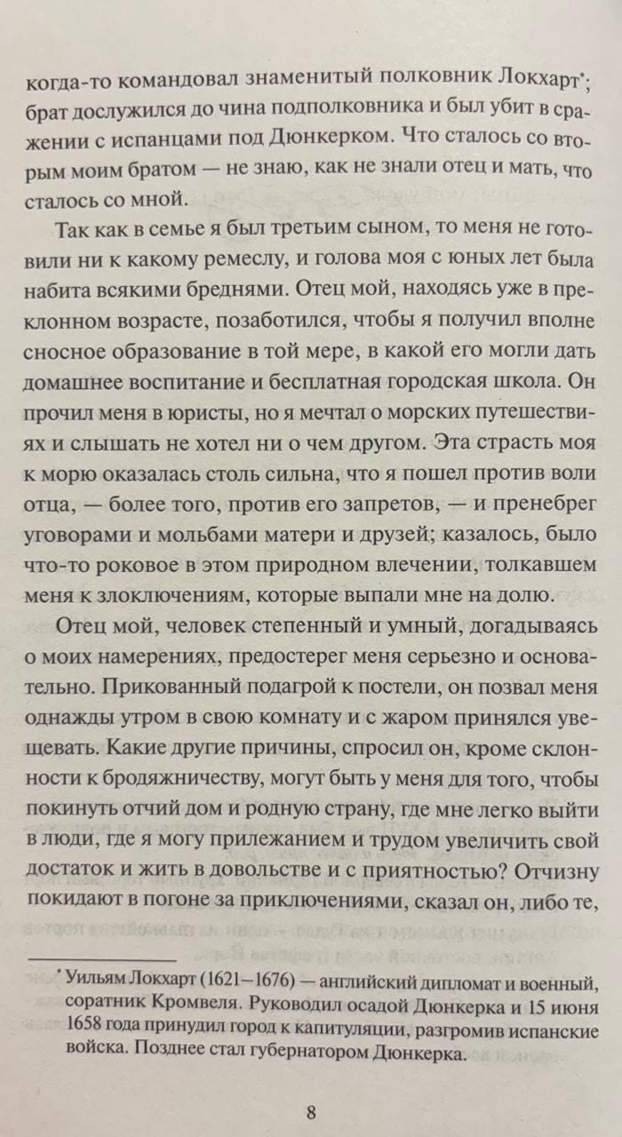 Piedzīvojumu literatūras klasika, romāns, kas bija Robinsonādes žanra aizsācējs. Grāmata ātri ieguva popularitāti un kļuva par himnu izdzīvošanai un cilvēka gara spēkam.