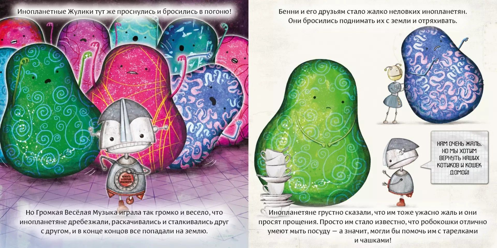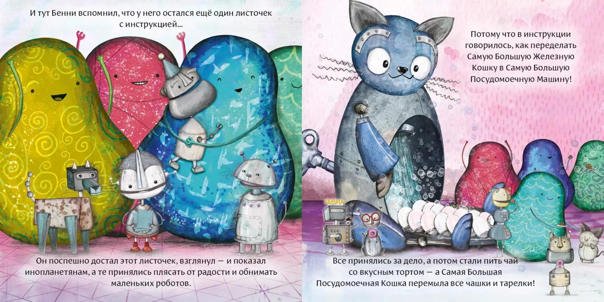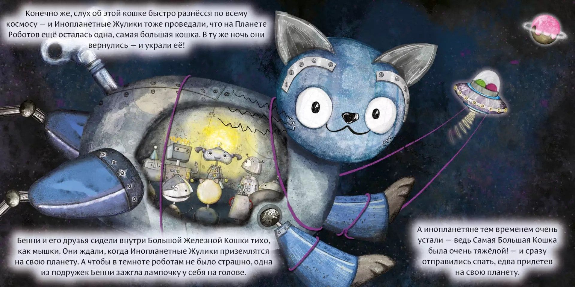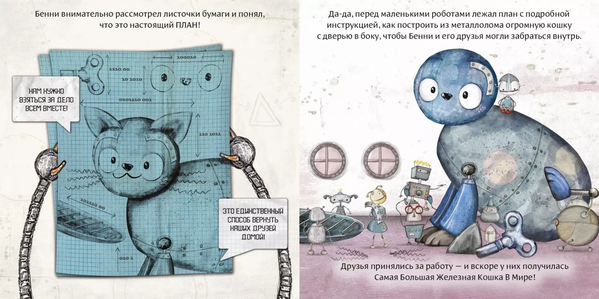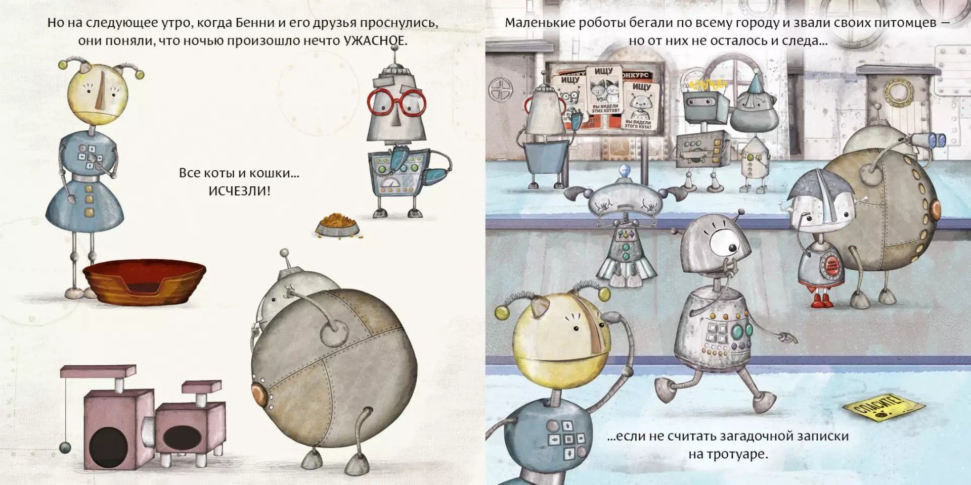 Benijs ir mazs robots. Viņš dzīvo Robotu planētā kopā ar mammu un savu mīļāko robotu kaķi Sparkiju. Viņam uz vēdera ir viena liela sarkana poga, ko var nospiest tikai īstas BĒDA gadījumā. Kādu rītu visi kaķi un kaķēni pazūd bez pēdām. Kā gan glābt savus mīļākos mājdzīvniekus? Un kam robotu draugiem būs nepieciešams Lielākais dzelzs kaķis? Un vai Benijs beidzot spēs nospiest savu sarkano pogu...?