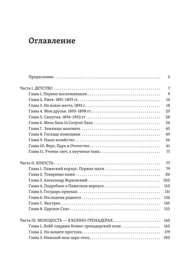Grāmata stāsta par viņa studiju gadiem Page korpusā un Nikolajeva Militārajā akadēmijā, dienestu imperatora galma tuvumā un tikšanās ar lielkņazu Konstantīnu Konstantinoviču un imperatori. Kā karjeras militārpersona Olferjevs pats pieredzēja Pirmā pasaules kara frontēs piedzīvoto sakāvju un 1917. gada nodevību pilno rūgtumu. Viņš bija liecinieks cara atteikšanās no troņa, štāba un armijas sabrukumam, kā arī pārdzīvoja Pilsoņu kara šausmas un emigrācijas grūtības.