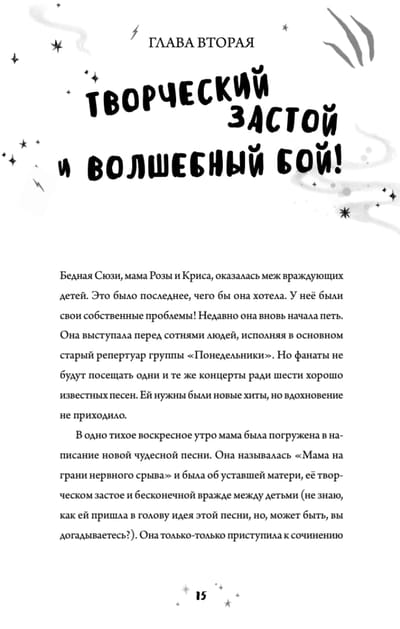 Ah, tas ir vecs paziņa! Merlins Lielais, kurš savulaik bija pasaulē visneiedomājamākais burvis vārdā Merdins Mežonīgais, 12 gadus vecā meitene Roze un viņas runājošā jūrascūciņa Bagele. Atceraties viņus no pirmās daļas? Šoreiz Roze jau pilnvērtīgi izmanto savas burvju spējas... Tāpat kā viņas neiespējami kaitinošais brālis Kriss, kuram maģija vajadzīga tikai tāpēc, lai izklaidētu savus draugus. Taču, kad Kriss pēkšņi pazūd un nokļūst gūstā viduslaikos, briesmīgu barbaru un ļaunas raganas rokās, Roza pēkšņi saprot, ka brālis viņai ir ļoti dārgs. Tagad meitenei jādodas uz tālo pagātni, lai atkal atrastu savu senči Merdinu, glābtu Krisu un reizē arī visu pasauli! Sirsnīga un smieklīga grāmata par patiesu draudzību, rūpēm par tuviniekiem, uzticību un to, cik svarīga ir šķipsniņa maģijas ikviena no mums dzīvē. Vidusskolas vecuma bērniem.