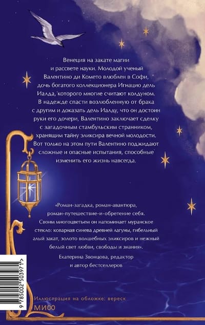 Venēcija 17. gadsimta beigās. Jaunais zinātnieks Valentino di Kometo ir iemīlējies Sofijā, bagāta kolekcionāra Ignacio del Jaldas meitā, kuru daudzi uzskata par burvi. Cerot glābt savu mīļoto no laulībām ar citu un pierādīt del Jaldai, ka ir meitas rokas cienīgs, Valentino noslēdz darījumu ar noslēpumainu Stambulas klejotāju, kurš glabā mūžīgās jaunības eliksīra noslēpumu. Taču šajā ceļā Valentino saskarsies ar grūtiem un bīstamiem pārbaudījumiem, kas var uz visiem laikiem mainīt viņa dzīvi.