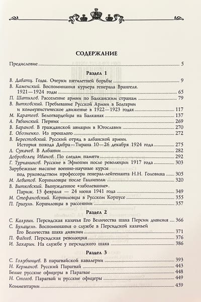 Grāmata ir trīspadsmitais sējums sērijā, kas veltīta Baltajai kustībai Krievijā un ģenerāļa P. N. Vrangela vadītās Krievijas armijas vēsturei pēc 1921. gada, kad tika nolemts to pārcelt uz Bulgāriju un Dienvidslāviju. Tajā parādīts, kā armijas rindas pamazām sāka izkliedēties Eiropā un citos kontinentos un kā 1924. gadā tika nodibināta Krievu vismilitārā savienība (ROVS) - lielākā krievu emigrācijas militārā organizācija. Vairāki memuāri stāsta par krievu militāro vienību dalību, dažos gadījumos izcilu, iekšzemes notikumos Albānijā, Bulgārijā, Irānā un Paragvajā.