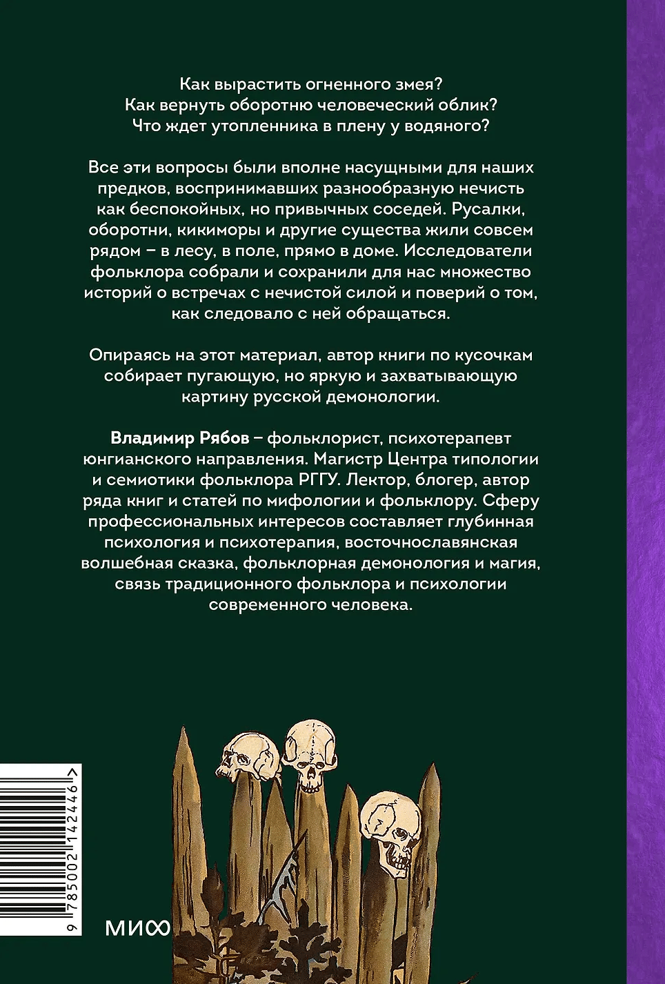 Visi šie jautājumi bija diezgan aktuāli mūsu senčiem, kuri dažādus ļaunos garus uztvēra kā nemierīgus, bet pazīstamus kaimiņus. Nāras, vilkači, kikimoras un citas radības dzīvoja pavisam netālu – mežā, laukā, tieši mājā. Folkloras pētnieki ir apkopojuši un saglabājuši mums daudzus stāstus par tikšanos ar ļaunajiem gariem un ticējumus par to, kā ar tiem rīkoties. Balstoties uz šo materiālu, šīs grāmatas autors ir salicis kopā biedējošu, tomēr spilgtu un valdzinošu krievu demonoloģijas ainu.