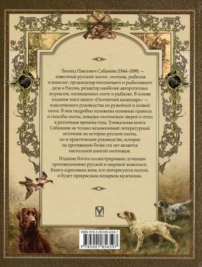 Unikālā Sabanejeva grāmata ir ne tikai neaizstājams literārs avots par krievu medību vēsturi, bet arī praktisks ceļvedis, kas vairāk nekā simts gadus ir bijis roku grāmata medniekiem. Izdevumā bagātīgi ilustrēti labākie krievu un pasaules glezniecības darbi.