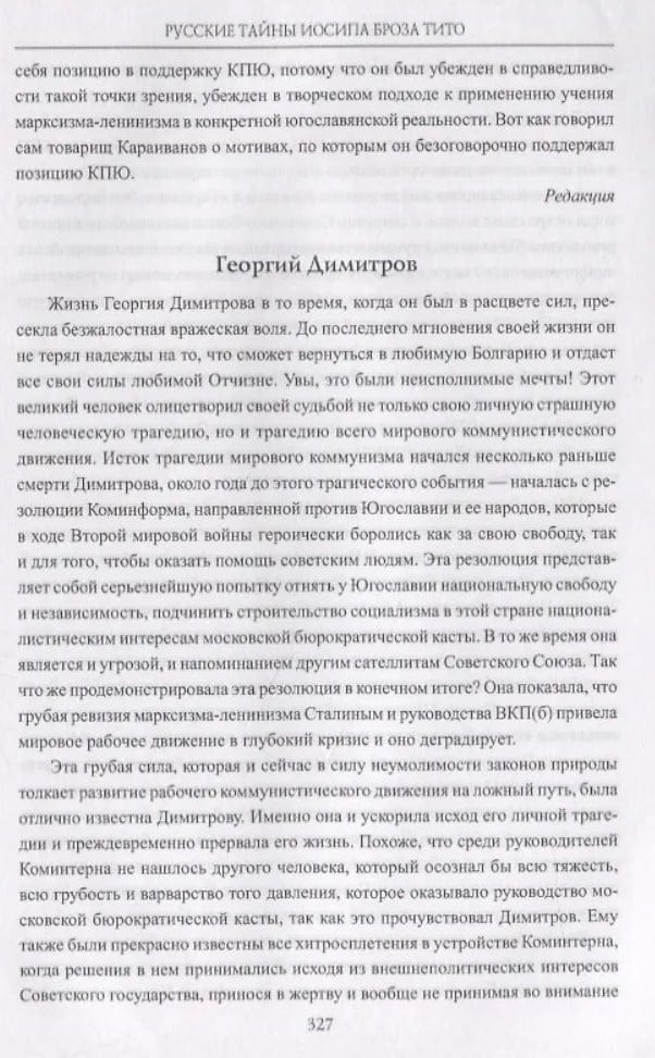 Slavenā Balkānu vēsturnieka Ņikitas Bondareva jaunā grāmata pēta Krievijas faktoru Josipa Broza Tito dzīvē. Balstoties uz Krievijas un Serbijas arhīvu dokumentiem, autors rūpīgi rekonstruē Tito agrīno dzīvi, izsekojot partizānu līdera — Balkānu leģendas — attīstībai un Krievijas un revolucionāro notikumu ietekmei uz viņa uzskatiem. Liela uzmanība tiek pievērsta Tito personīgajai dzīvei, viņa sievām un tuviem līdzgaitniekiem, kā arī sadarbībai ar slepenajiem dienestiem un karjerai Kominternā.